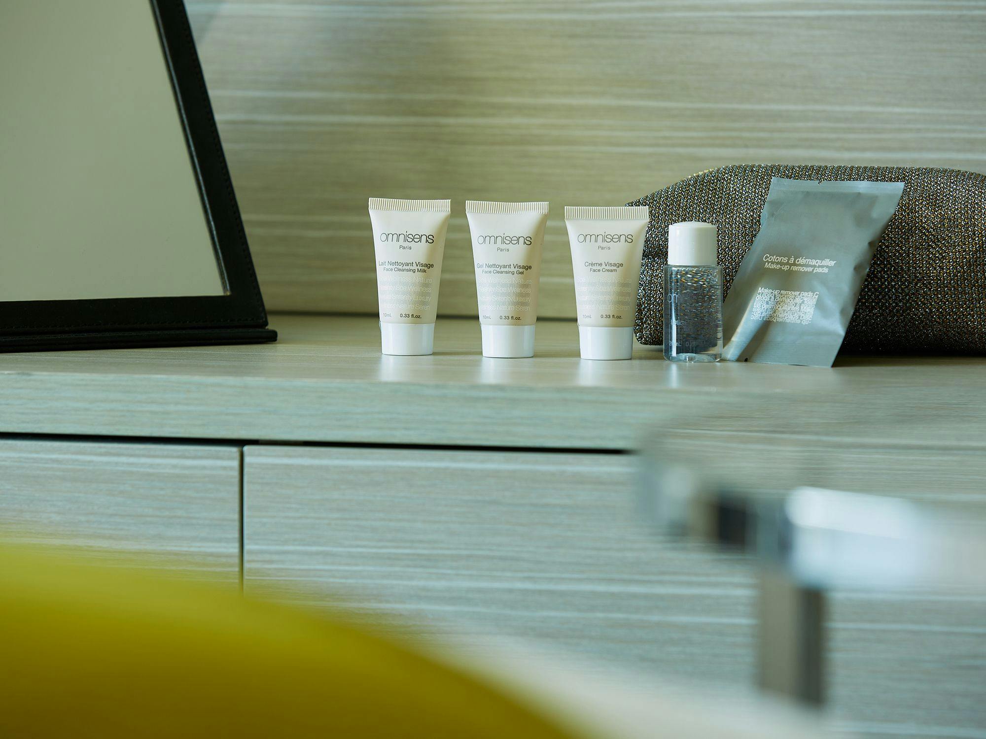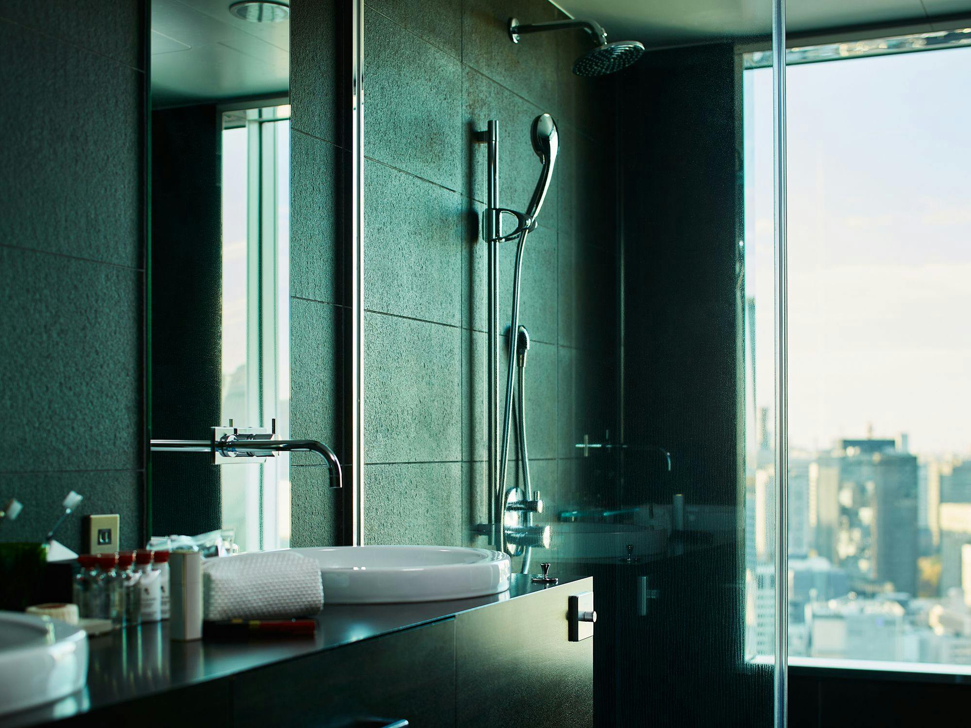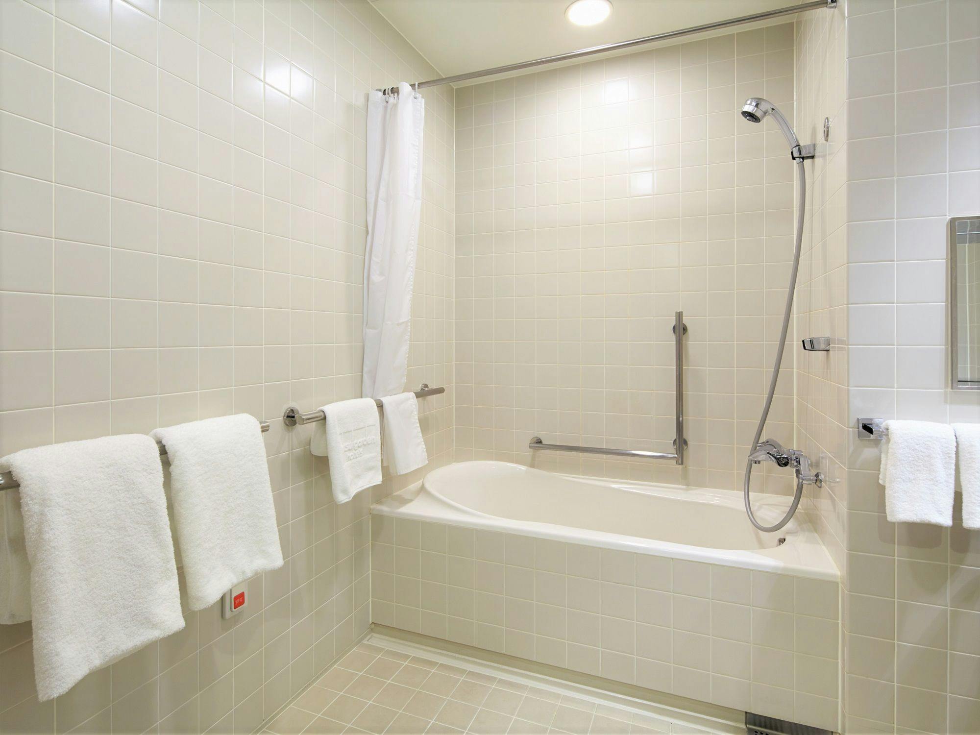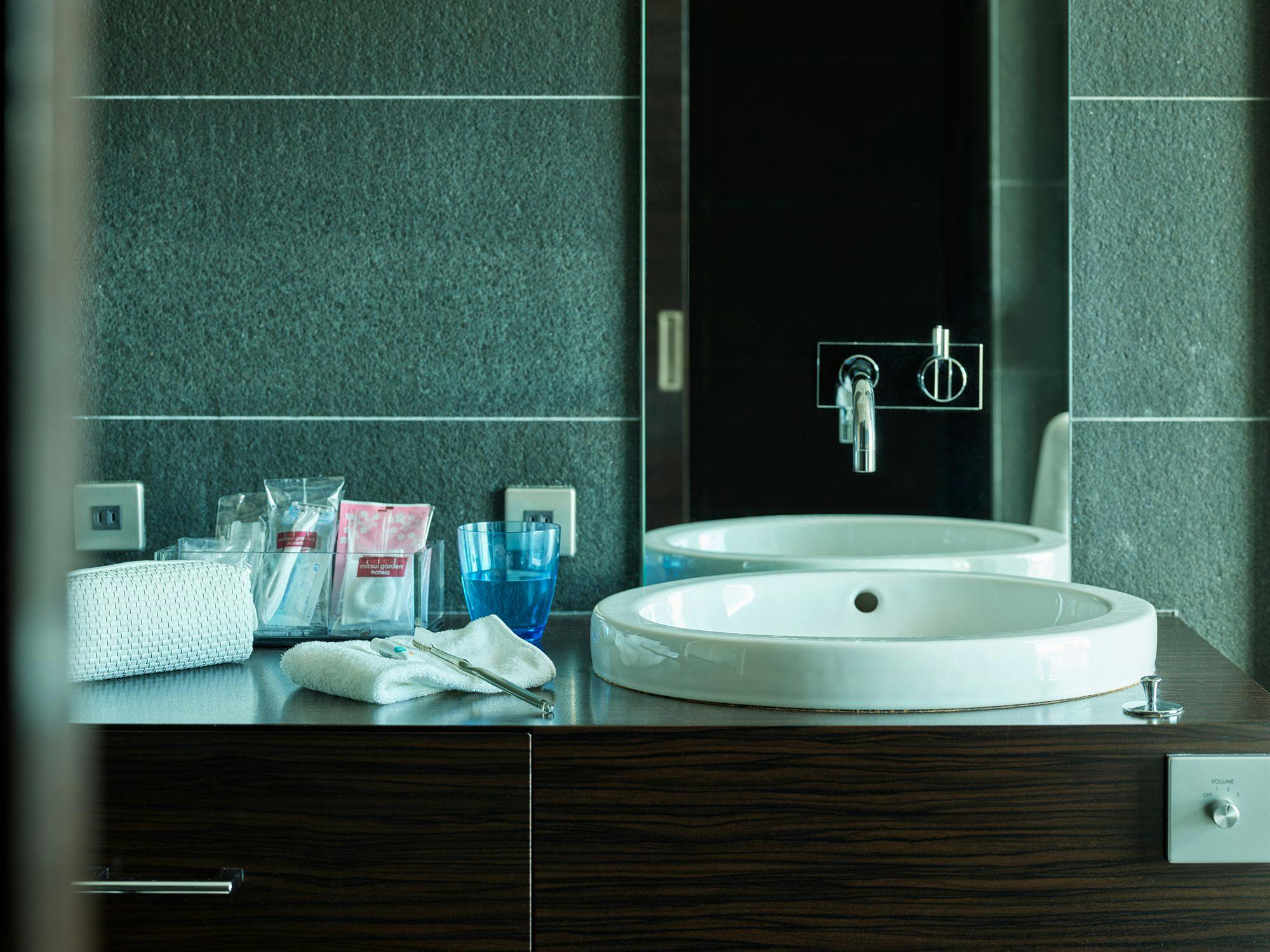 ゆったりとバスタブにつかりながら、美しい東京の夜景、東京スカイツリー(R)を堪能できる、ビューバスタイプのツインルームです。心ゆくまでのバスタイムをお楽しみいただけるよう、心地よいバスローブ、やさしい香りのバスソルトをご用意しています。お部屋にはワインオープナーとグラスのご用意も。記念日のステイにもご好評いただいています。