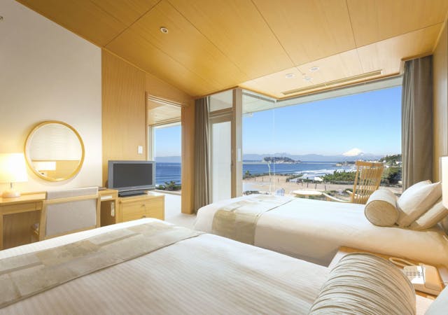 相模湾、江ノ島側に向き海が一望できるスイートルーム。