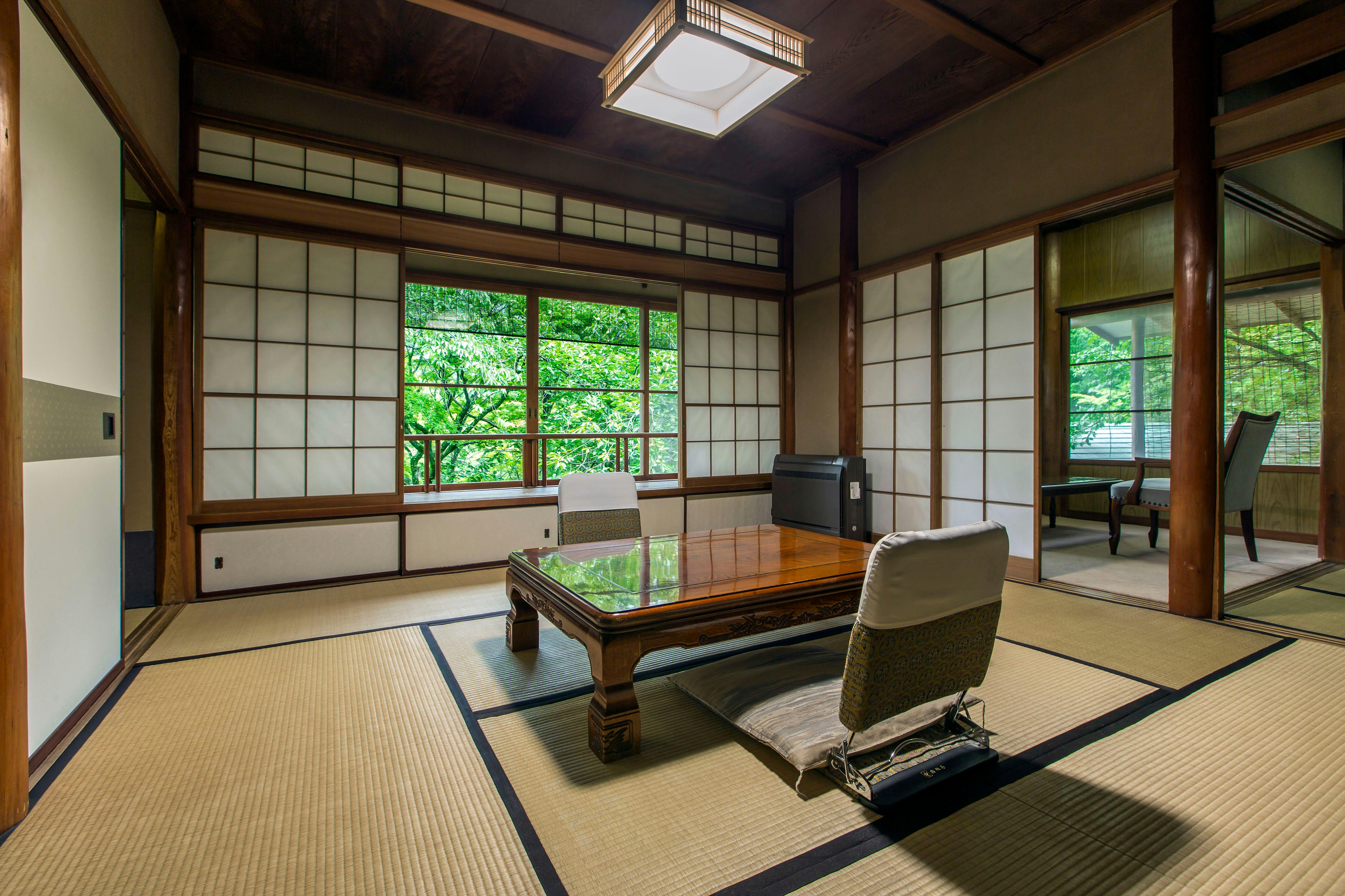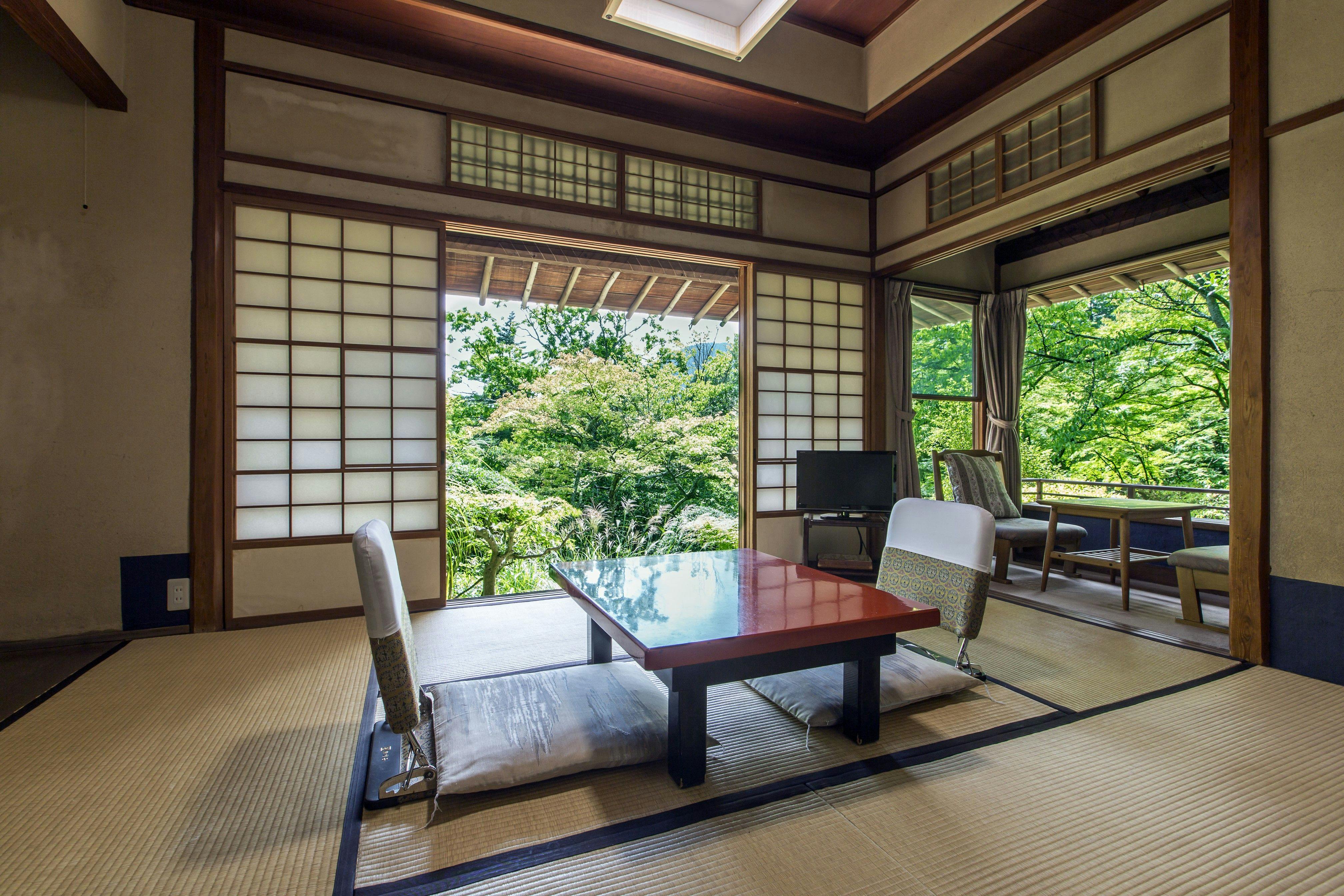別荘時代の面影を残し、豊かな自然に包まれた14室の和室。自家源泉の湯に浸かり、旬の素材を活かした会席料理は新鮮な山の幸、海の幸。ゆっくり流れる時間は何もしないことの贅沢を感じさせてくれることでしょう。