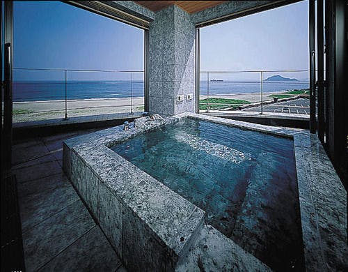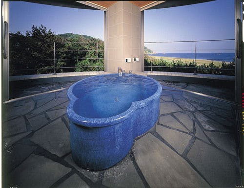 海一望、全6室露天風呂付客室。日本の渚・音風景・白砂青松・道100選に選ばれた恋路ヶ浜の目の前にございます。