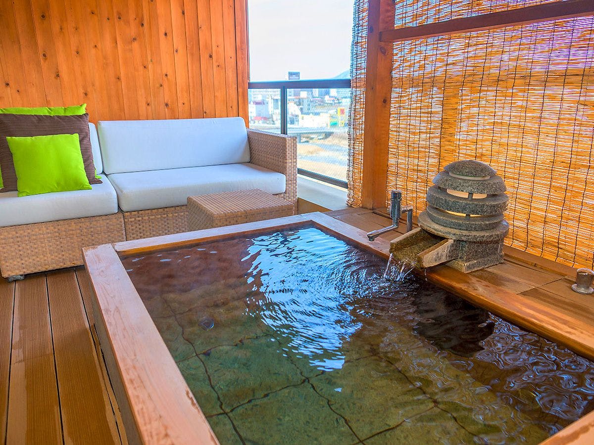 ○客室露天風呂以外も最上階7階の男女別大浴場「夢路の湯・夢見の湯」で