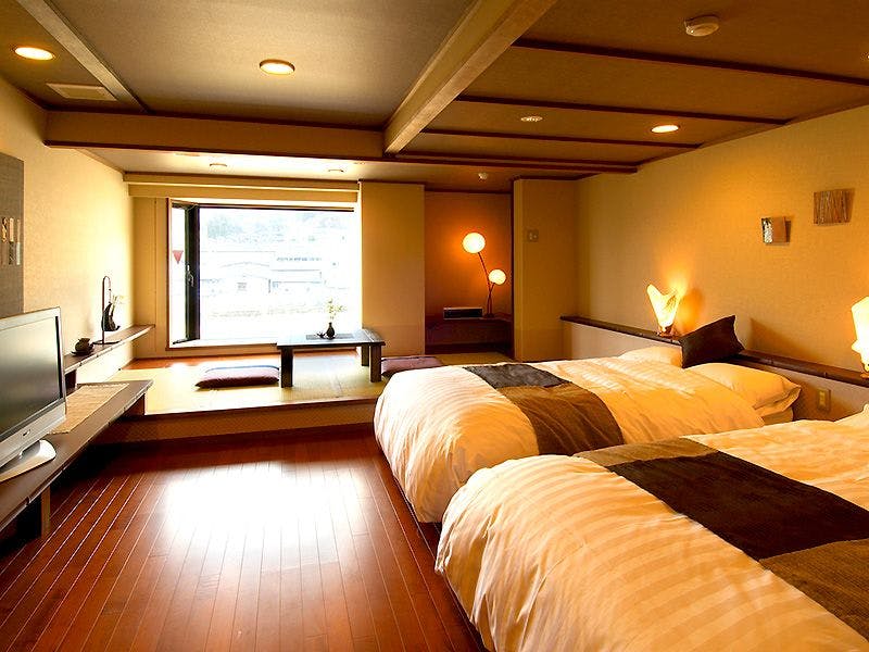 ■ツインベッド+畳リビング+シャワールームのモダンデザイン客室。