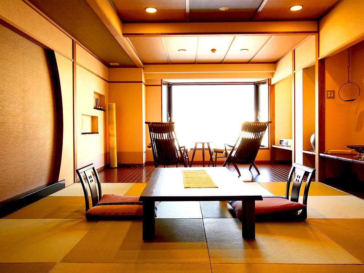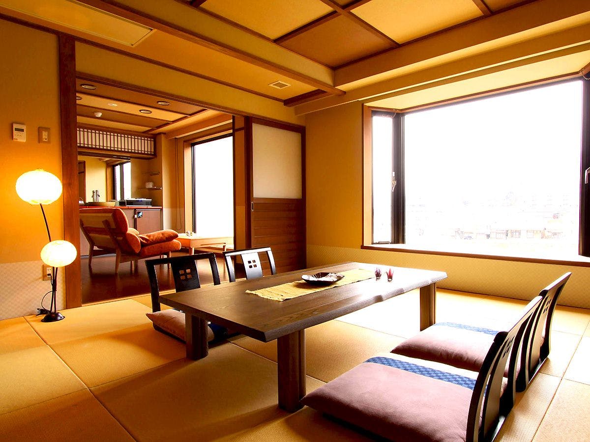 ■和室10畳+リビング+シャワールームのモダンデザイン客室。