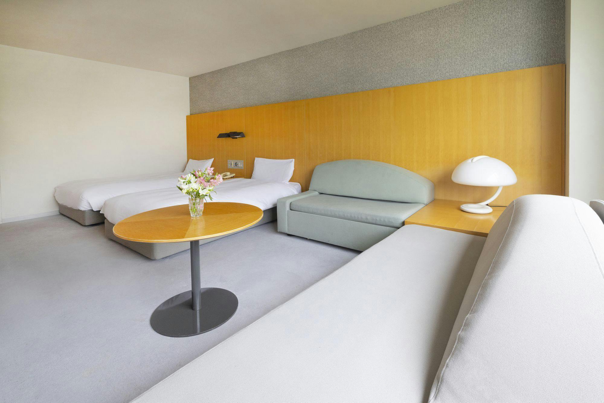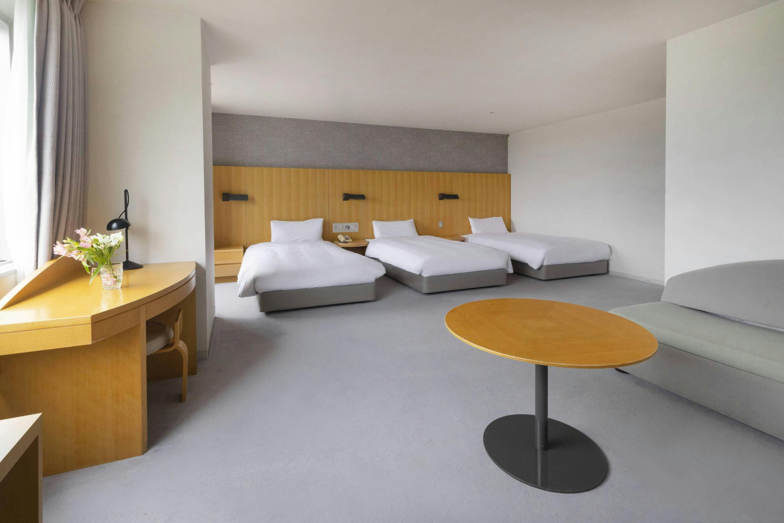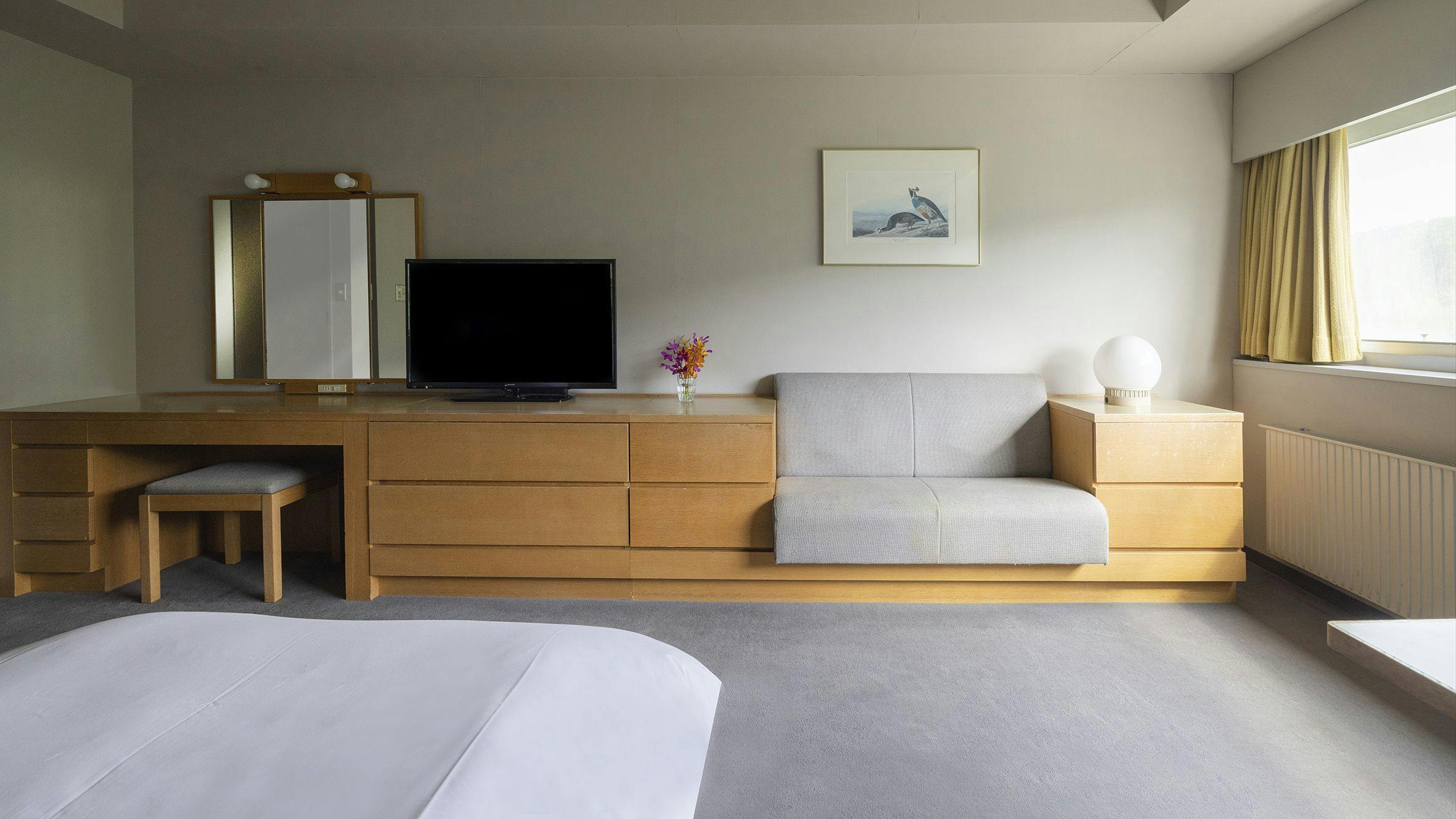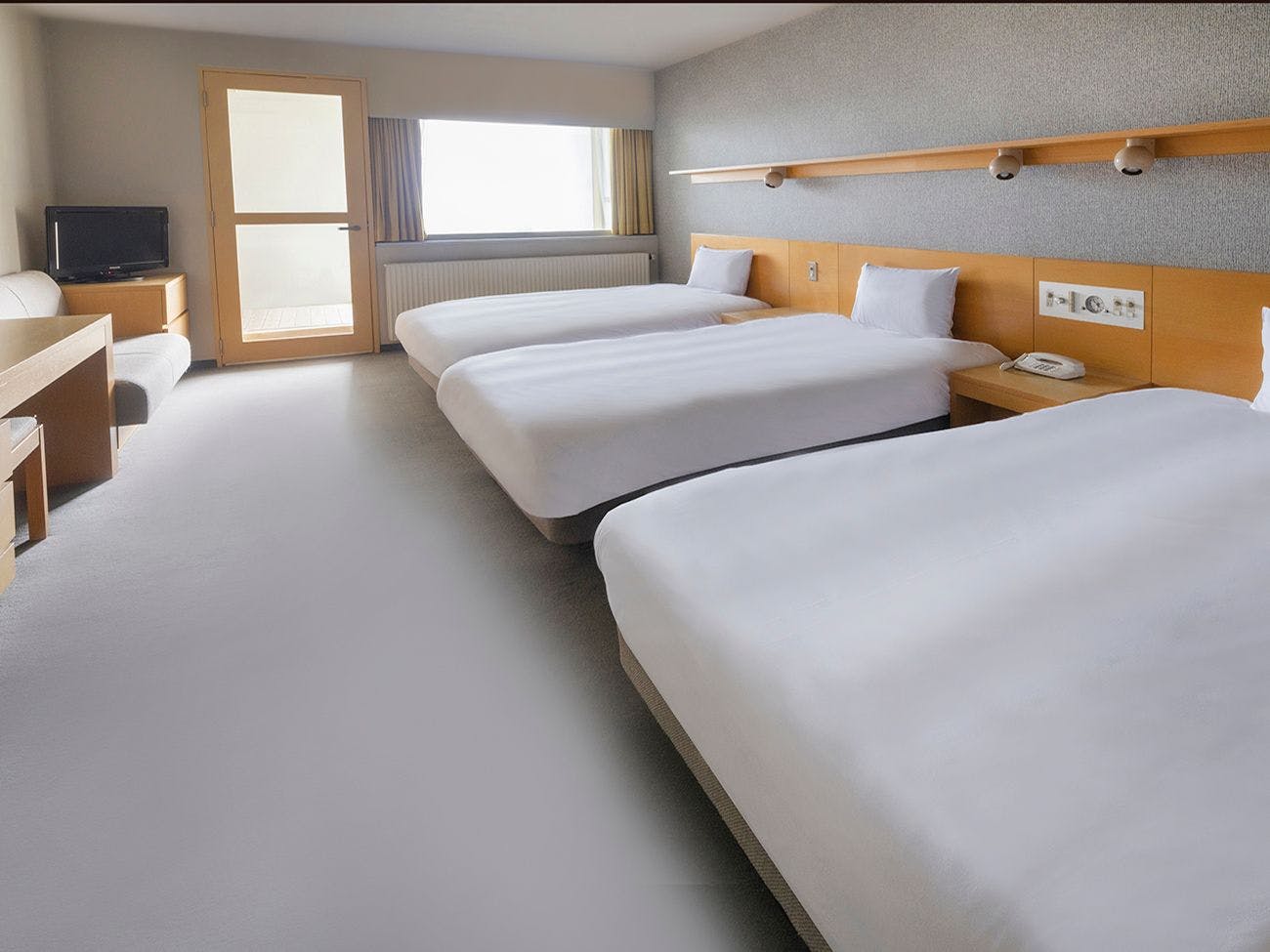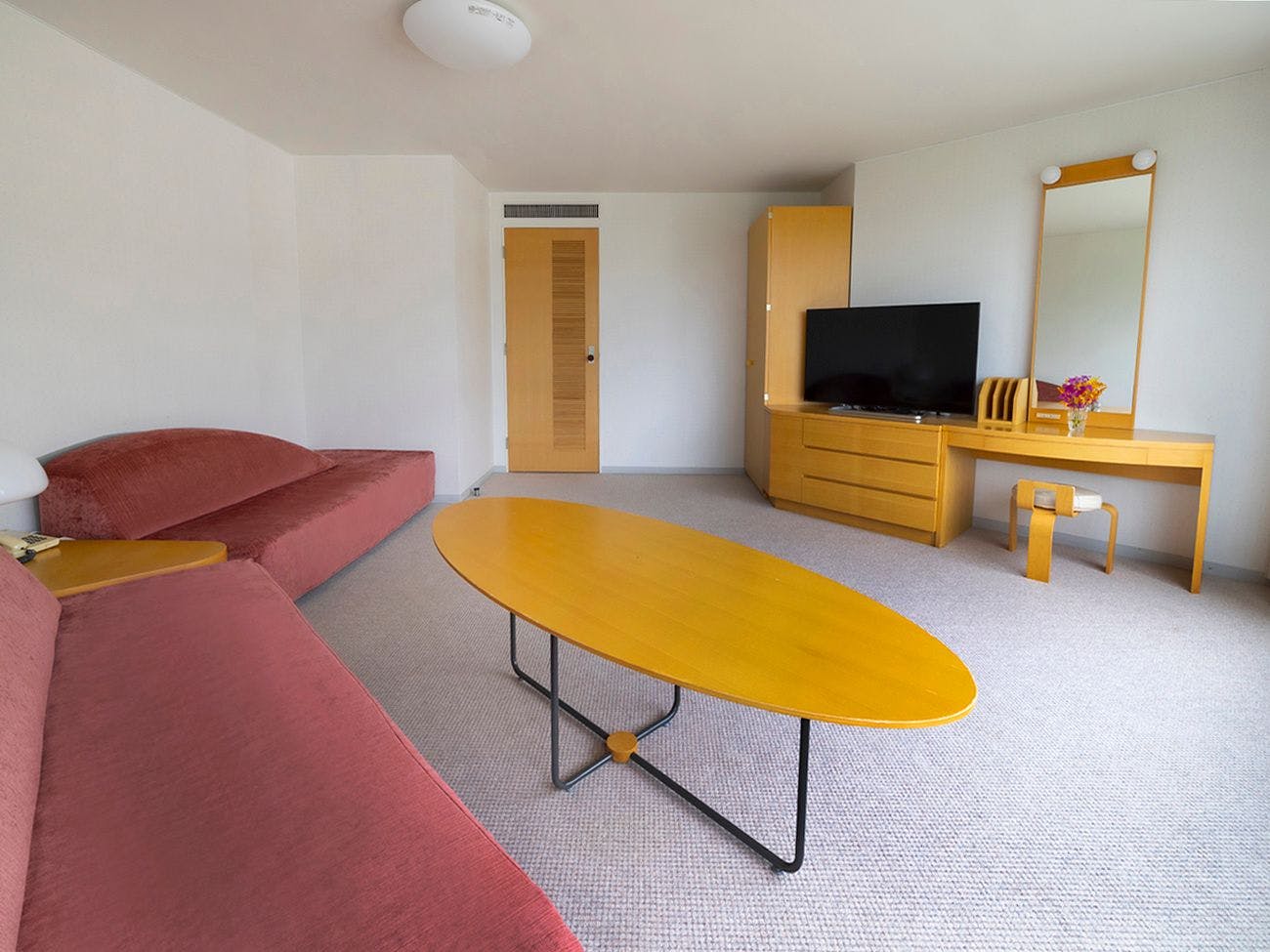 本館にある29平米のスタンダードラージツインルーム。 客室には、シングルサイズのベッド2台とソファーベッド1台、 ユニットバス、浴衣、ヘアドライヤー、冷蔵庫を完備。