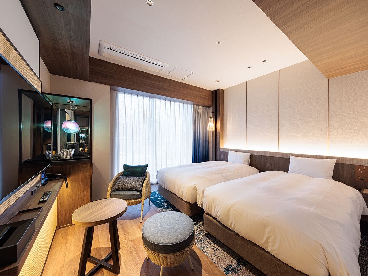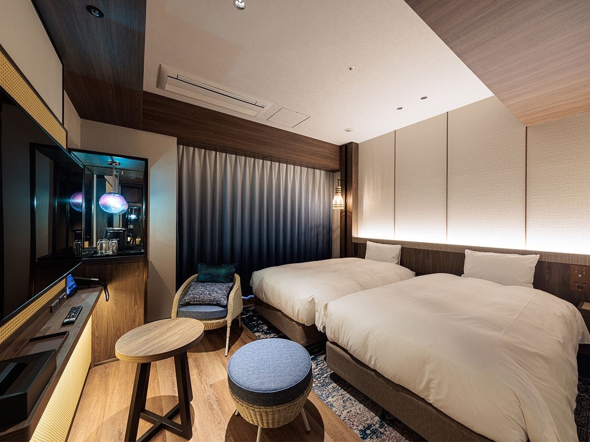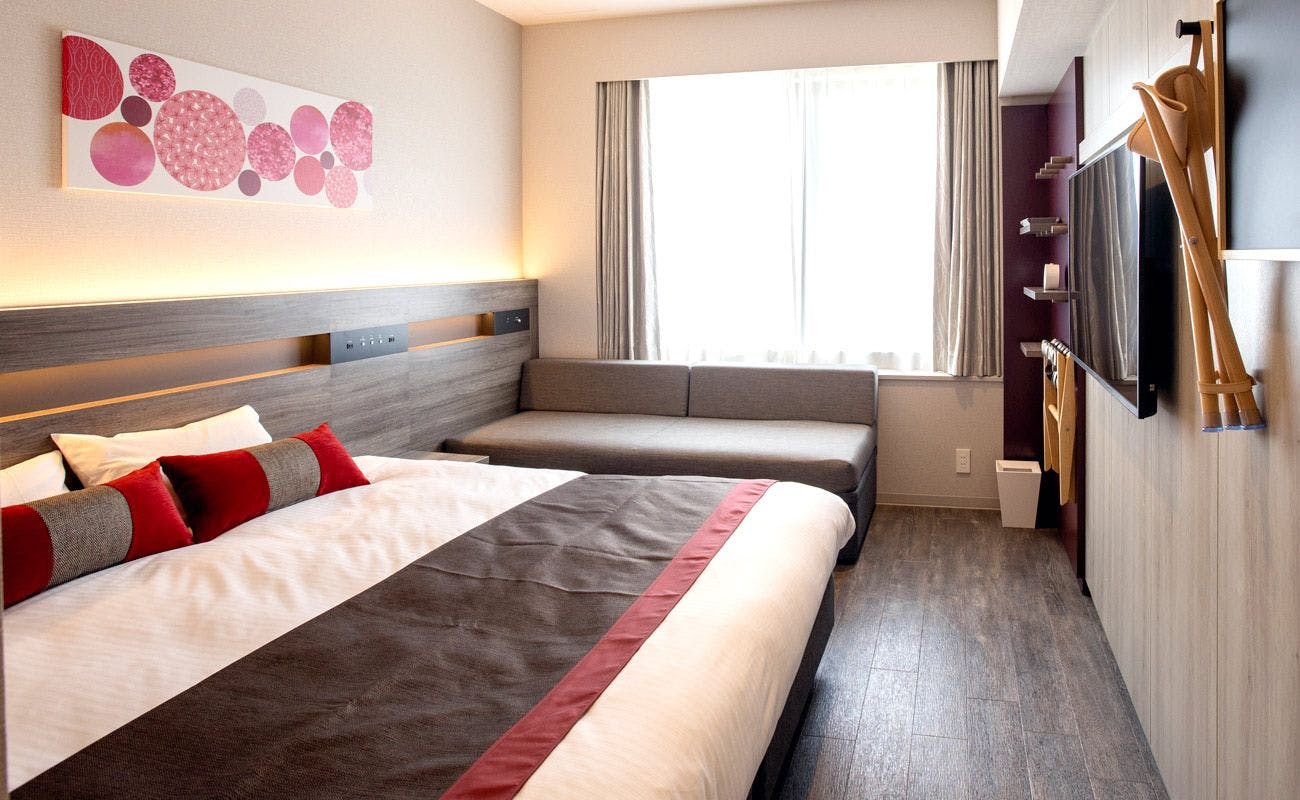ベッド(1108×1968)×2台とエキストラベッド(1020×1880)×1台のご利用で最大3名様まで宿泊いただけます。