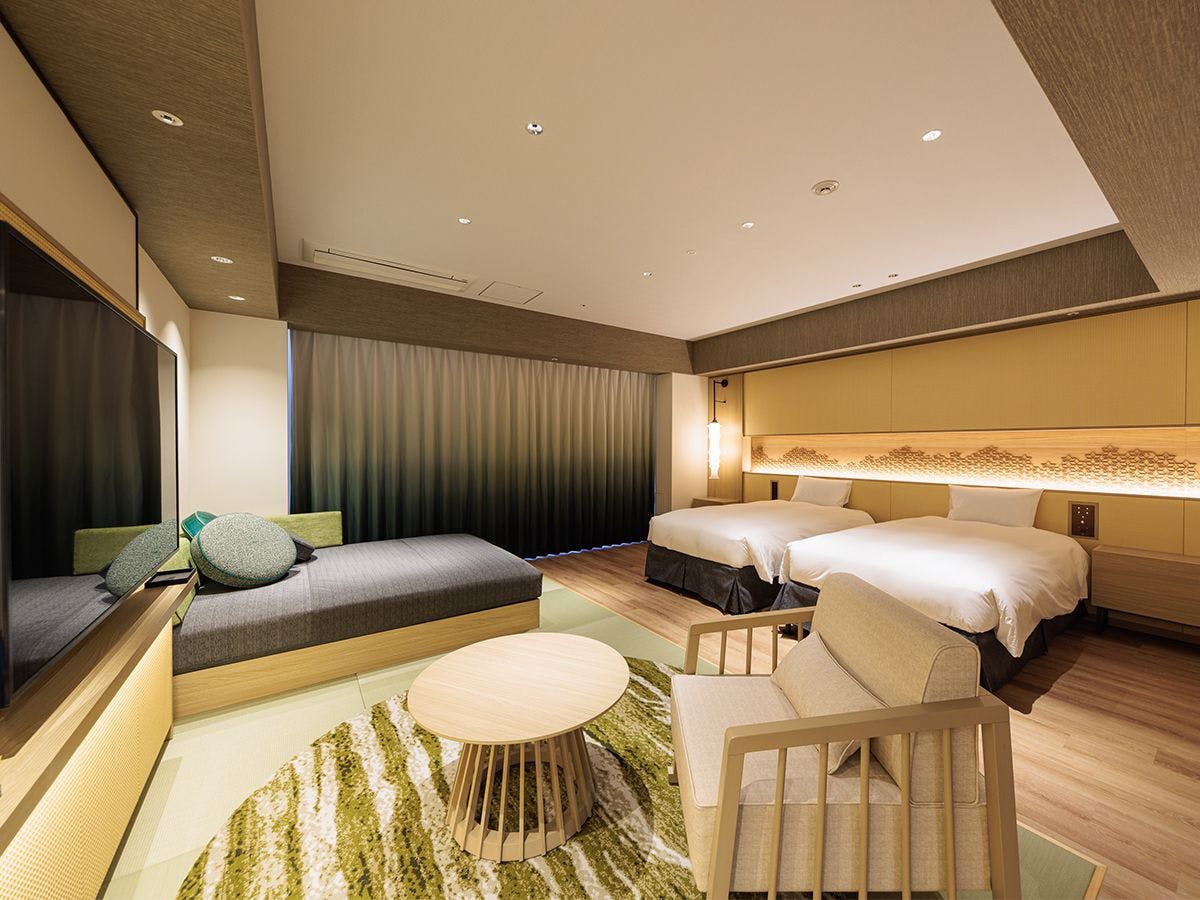ご友人様同士や小さなお子様連れのご家族におすすめの畳スペースのある客室。