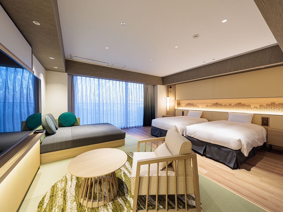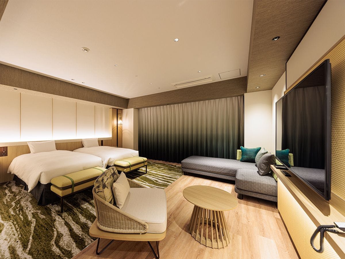 別府の雄大な山々の緑を表現したカラーコンセプトルーム<森林SHINRIN>