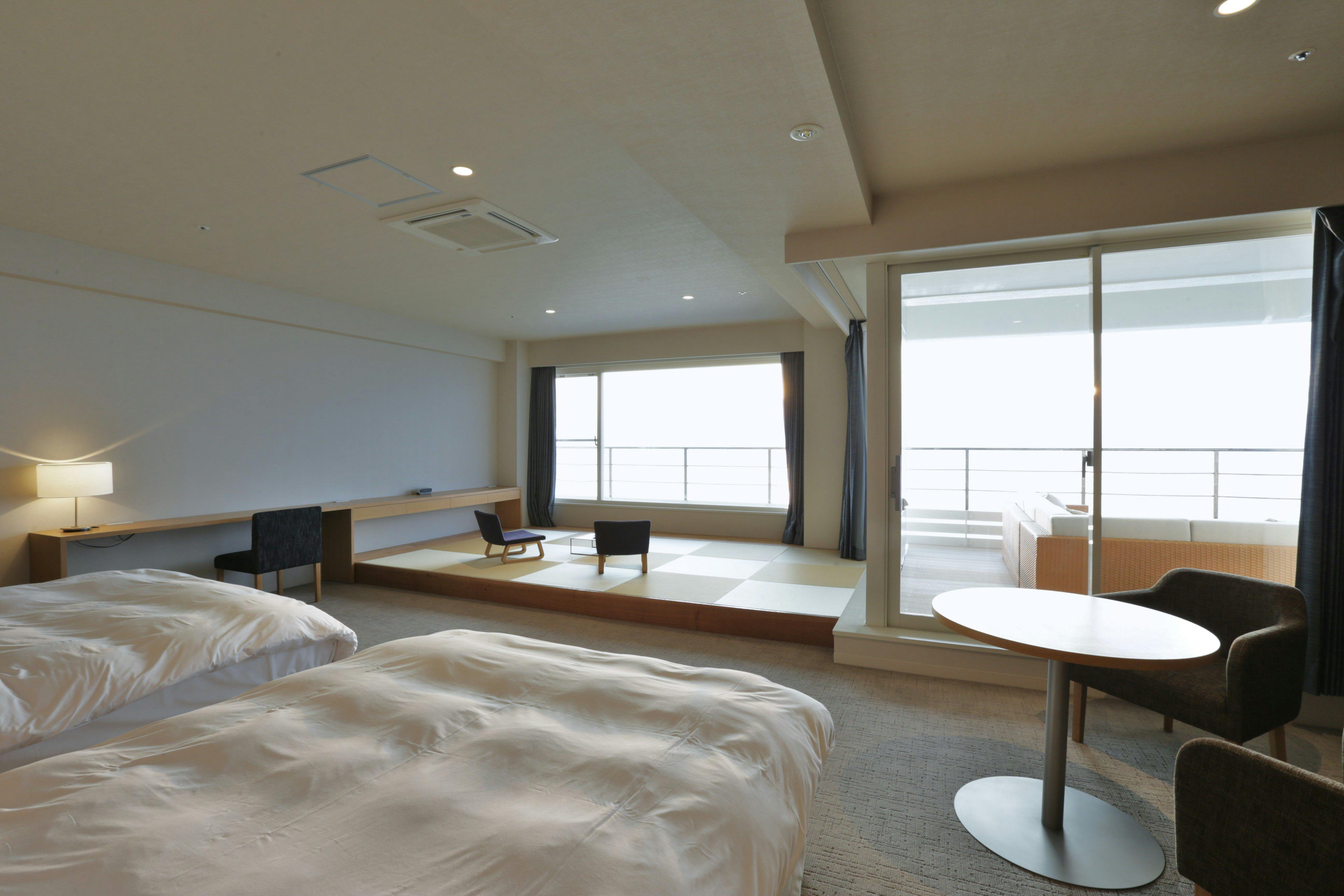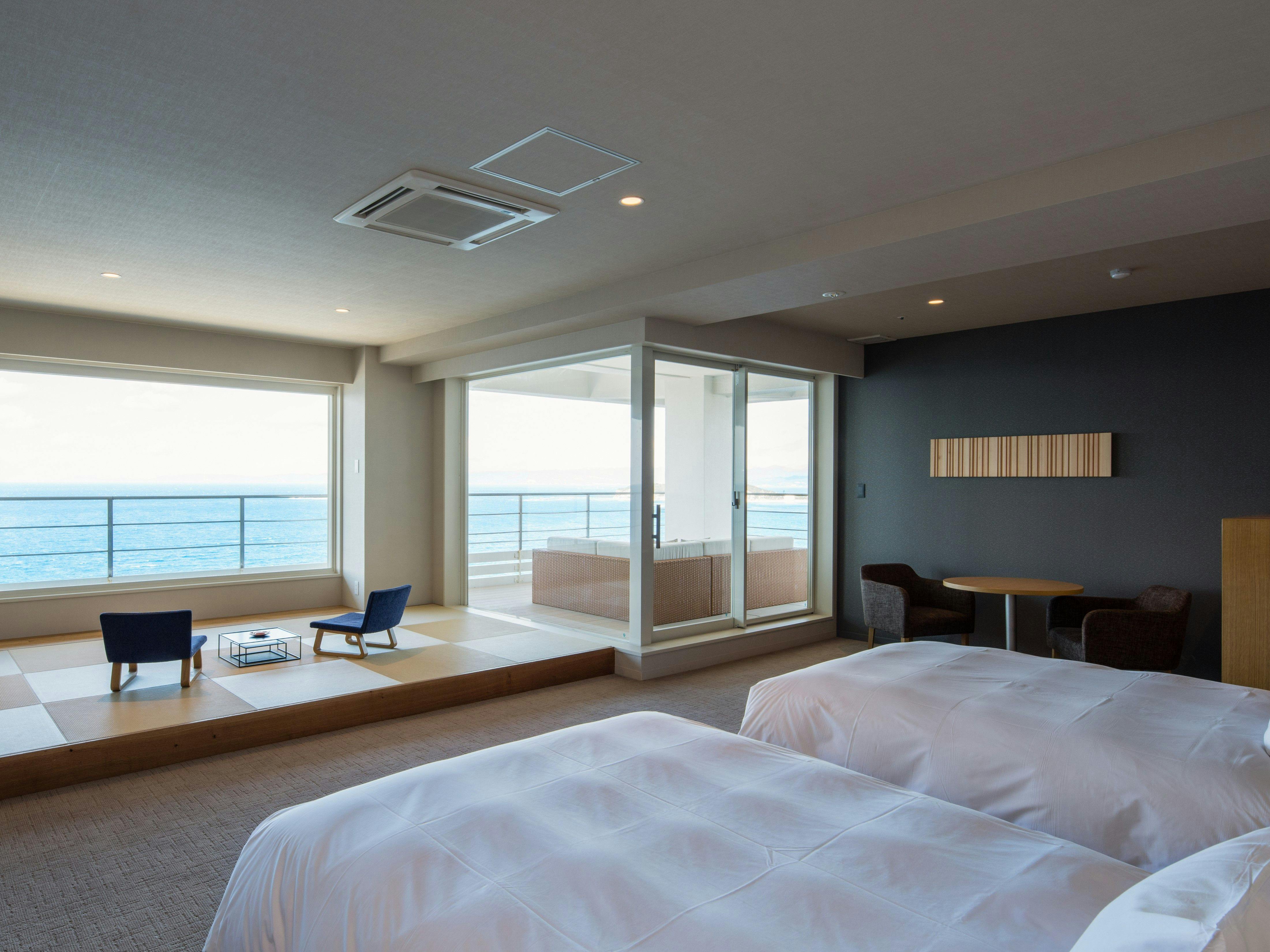 ■特記事項:白良浜と太平洋を眺めるインナーテラス付コーナースイートもしくは太平洋一望のインナーテラス付コーナースイートをご用意いたします(ベッド2台+敷布団2枚)【改装済】