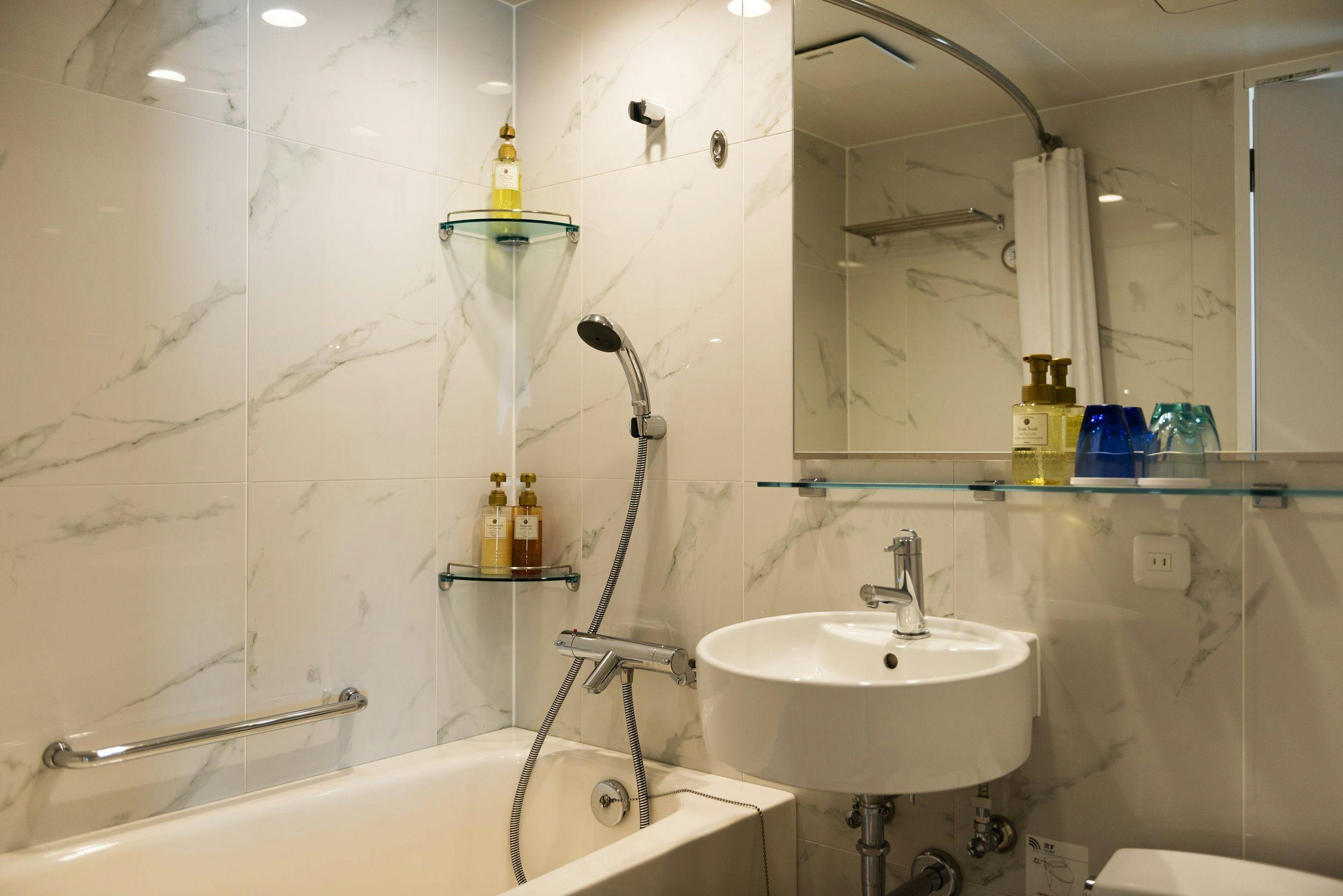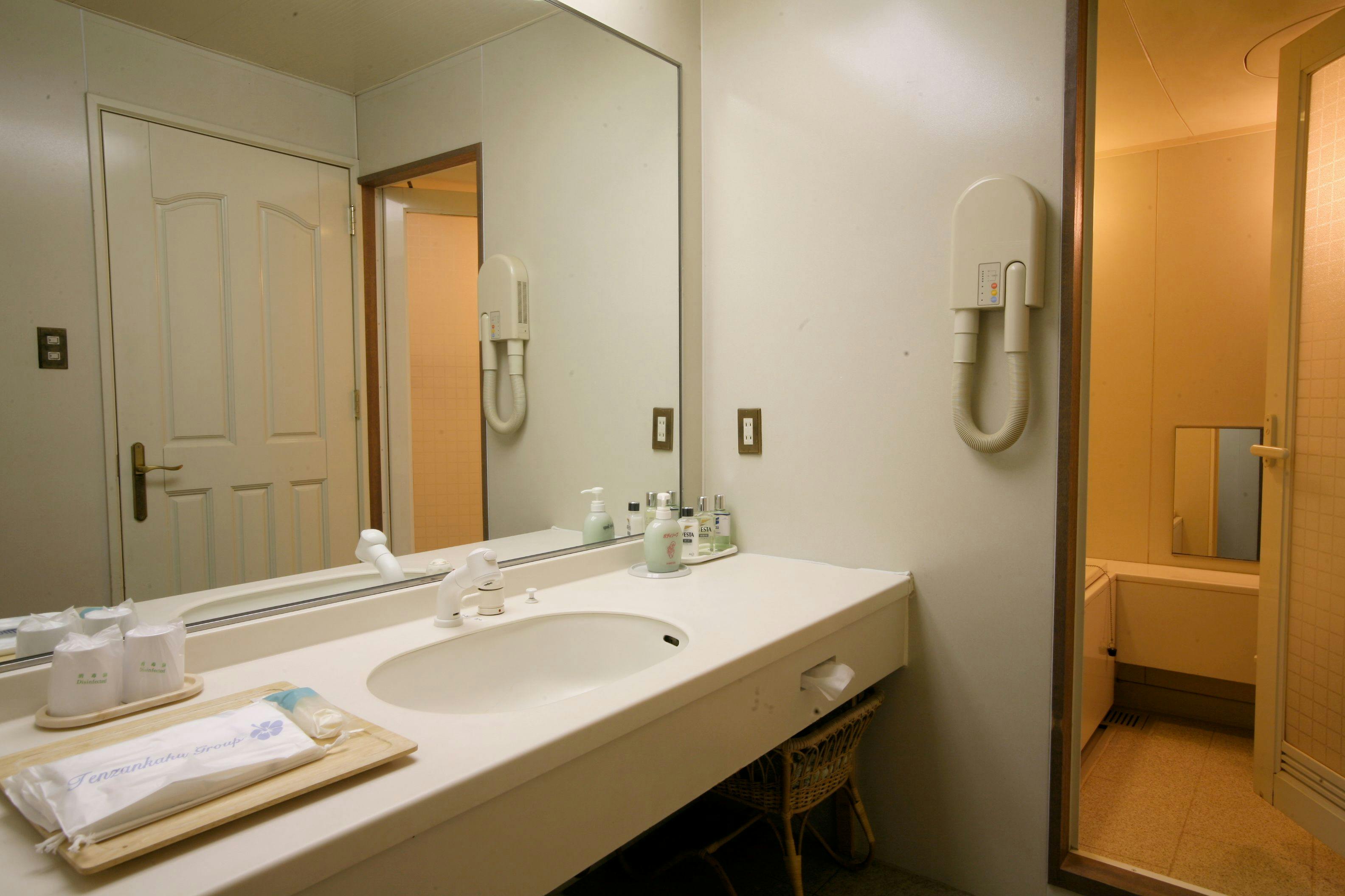 ボディーソープ/フェイスソープ/シャンプー・リンス/ドライヤー/茶器セット/グラス/電気ポット/金庫/TV/冷蔵庫/ウォシュレット/無料Wi-Fi