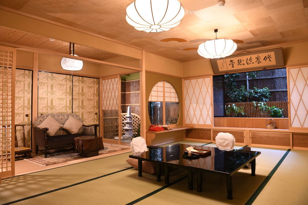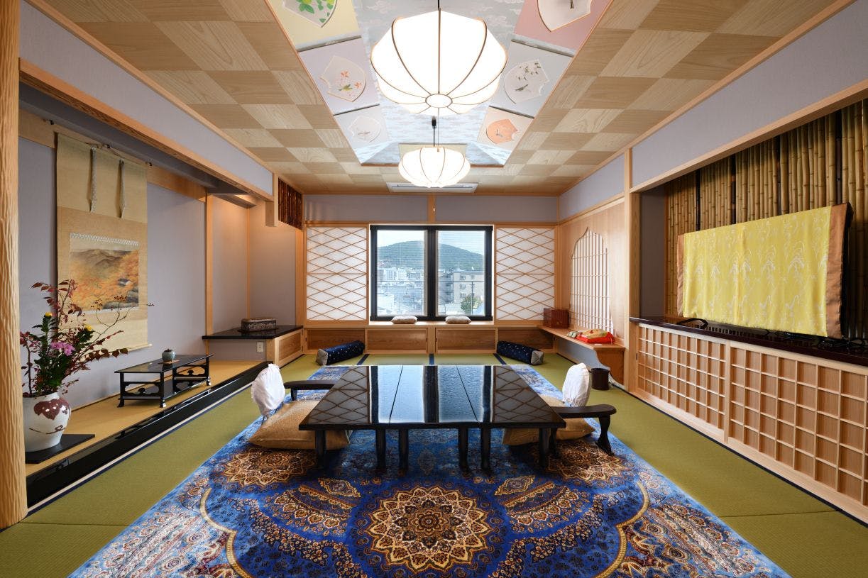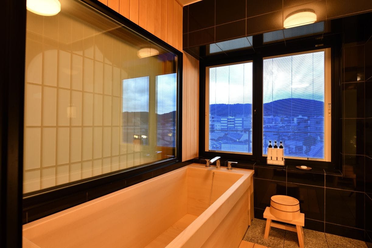犬矢来を施した京都らしい紙和風の中に、大正浪漫ほのかに香る宿。旬の味覚・京の味覚たっぷりの京料理、樹齢400年超の高野槇造の浴場が自慢です。