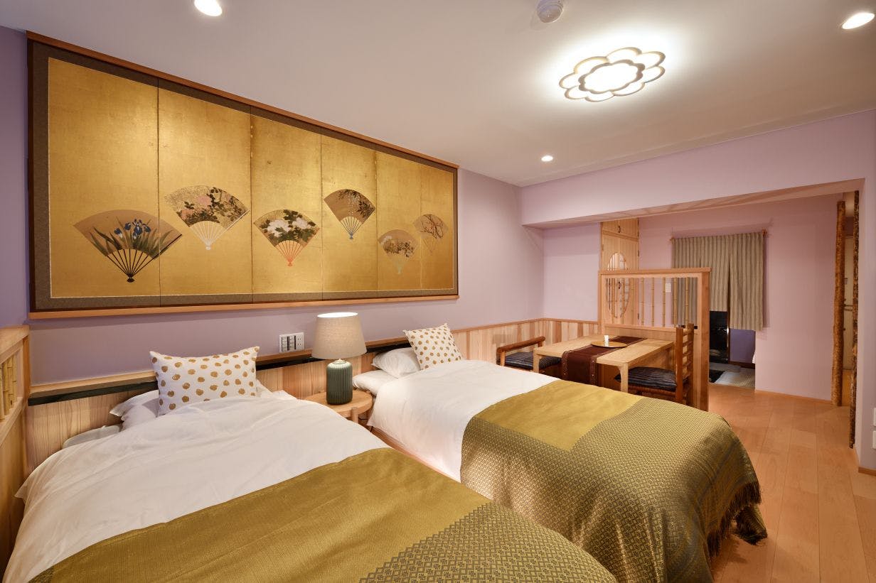 新館に部屋食対応の和モダンな洋室をご用意しました。内装は、和のテイストで仕上がっております。ベッドのある洋室ですが、お部屋でお食事をしていただけるようにし、旅館ならではのおもてなしをゆっくりお楽しみいただけます。無線LANがあるので、インターネット可能です。※小型犬同伴などの条件がある方のお受入はいたしかねます。それぞれ該当するプランからご予約お願いいたします。