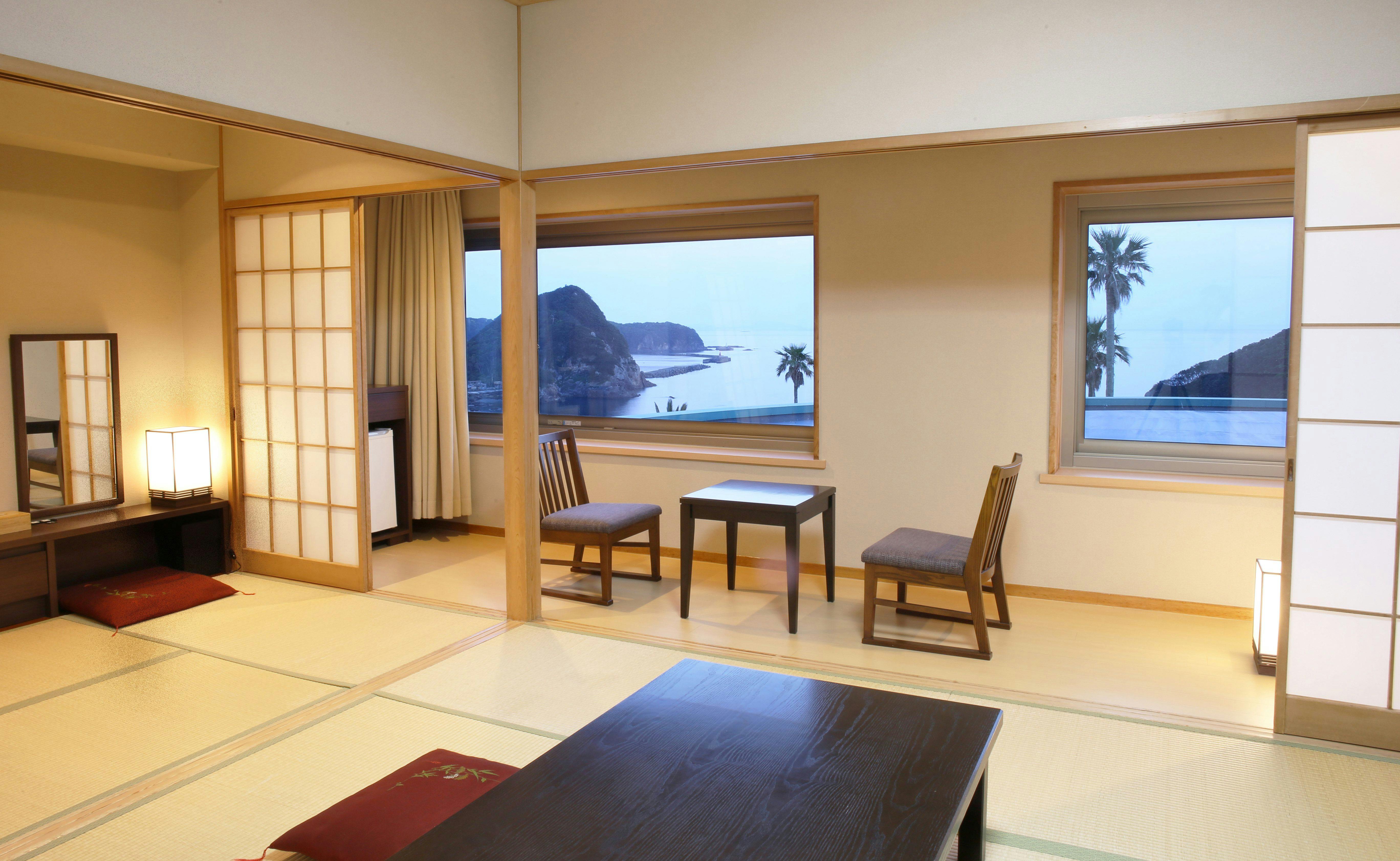 海側を眺望する10畳の和室(バス・トイレ付き)です。小さなお子様がご一緒でも安心。お部屋のお風呂とトイレは分かれております。※お部屋のお風呂は温泉ではございません。※トイレは少し狭い設計になっております。あらかじめご了承くださいませ。【お布団敷きについて】お布団はお客様のお好きな時間にご自身でお敷き頂いております。ご理解・ご協力のほどお願い申し上げます。