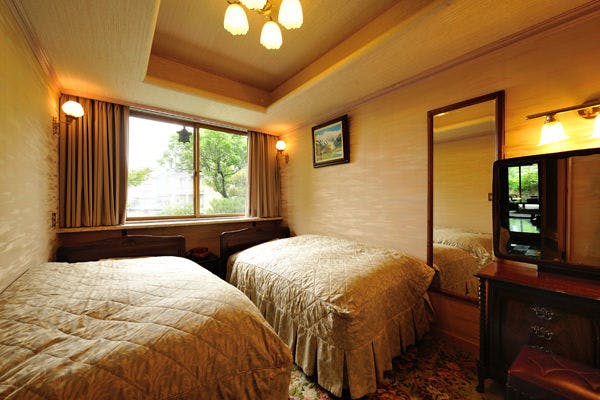 エレベーターに一番近いお部屋でベットルームのある和洋室です。お風呂への移動に便利でベットでのお休みを希望されるシニアの方に人気です。セパレートタイプのお部屋なので目的によって使え分けができます。内湯はタイル張りの沸かし湯となっております。※2023年7月1日より完全禁煙部屋となります。
