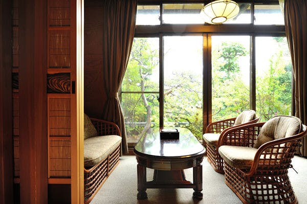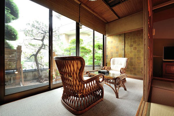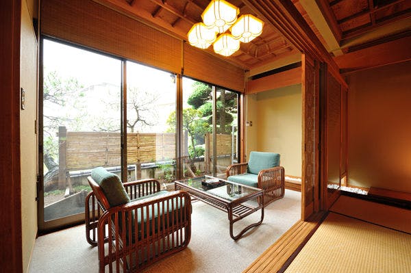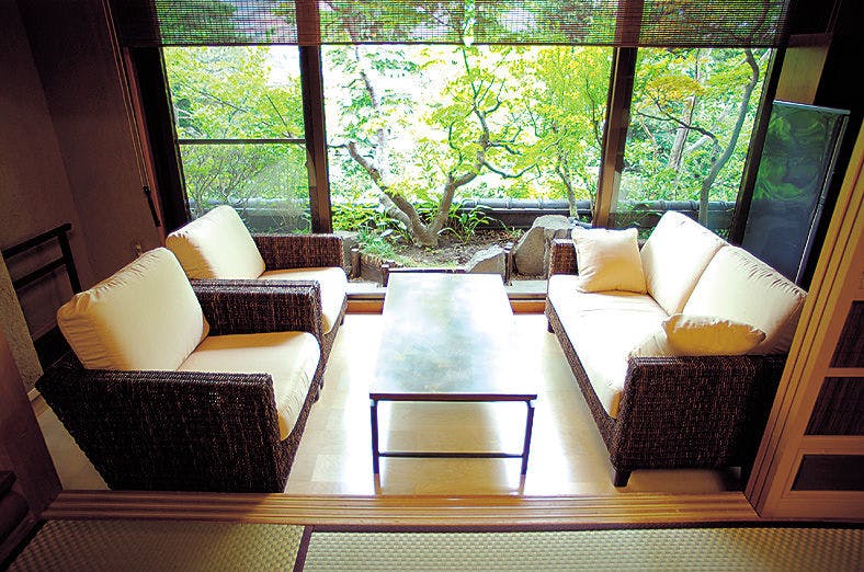スタンダードな和室のお部屋となります。内風呂はございませんが、数奇屋風10帖間とソファー付き広縁でゆったりと静かなお時間をお過ごしいただけます。※2023年7月1日より完全禁煙部屋となります。