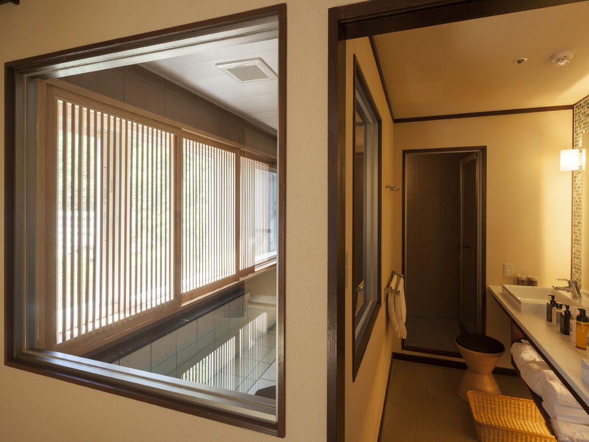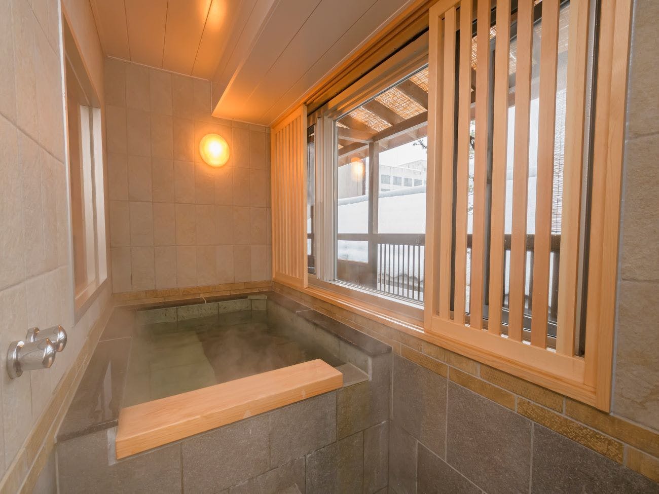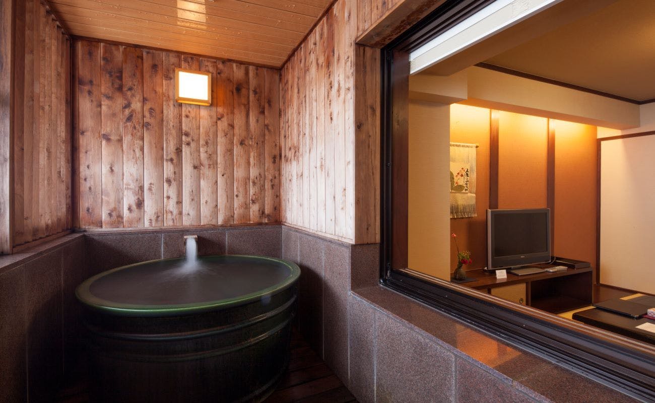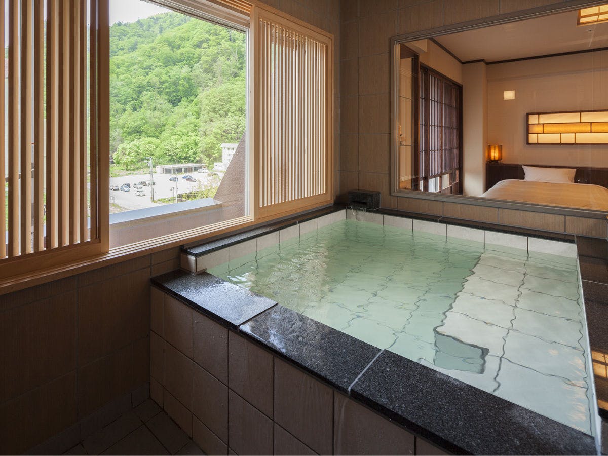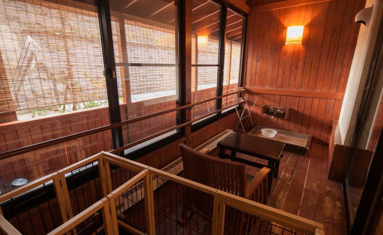 木のぬくもり溢れる客室内温泉でゆったりとお寛ぎください。