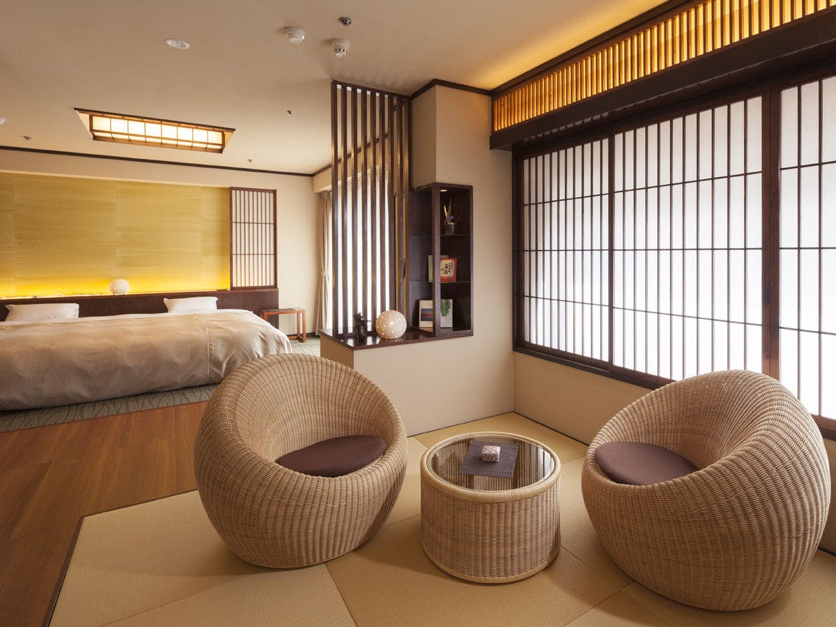 69平米/屋上露天風呂付/洗浄機付トイレ/個別空調/ベッド幅115cm(2台)/マッサージチェア/ゆ瞑み無料/冷蔵庫(水)/無料Wi-Fi/禁煙