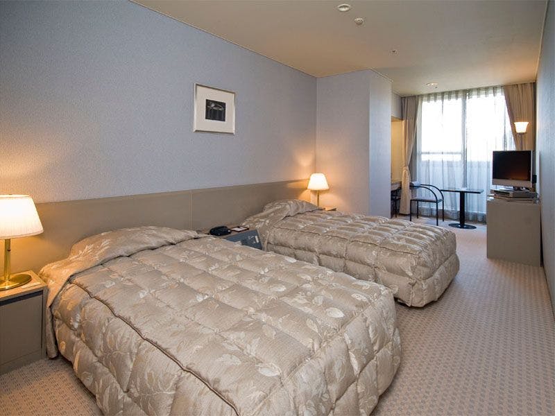 松風楼(しょうふうろう)8階は最上階に位置するワンランク上質なお部屋。マッキントッシュ風アールヌヴォーの洗練されたデザインで建築家・黒川紀章のこだわりが感じられます。窓からは松山城を眺むこともできます。