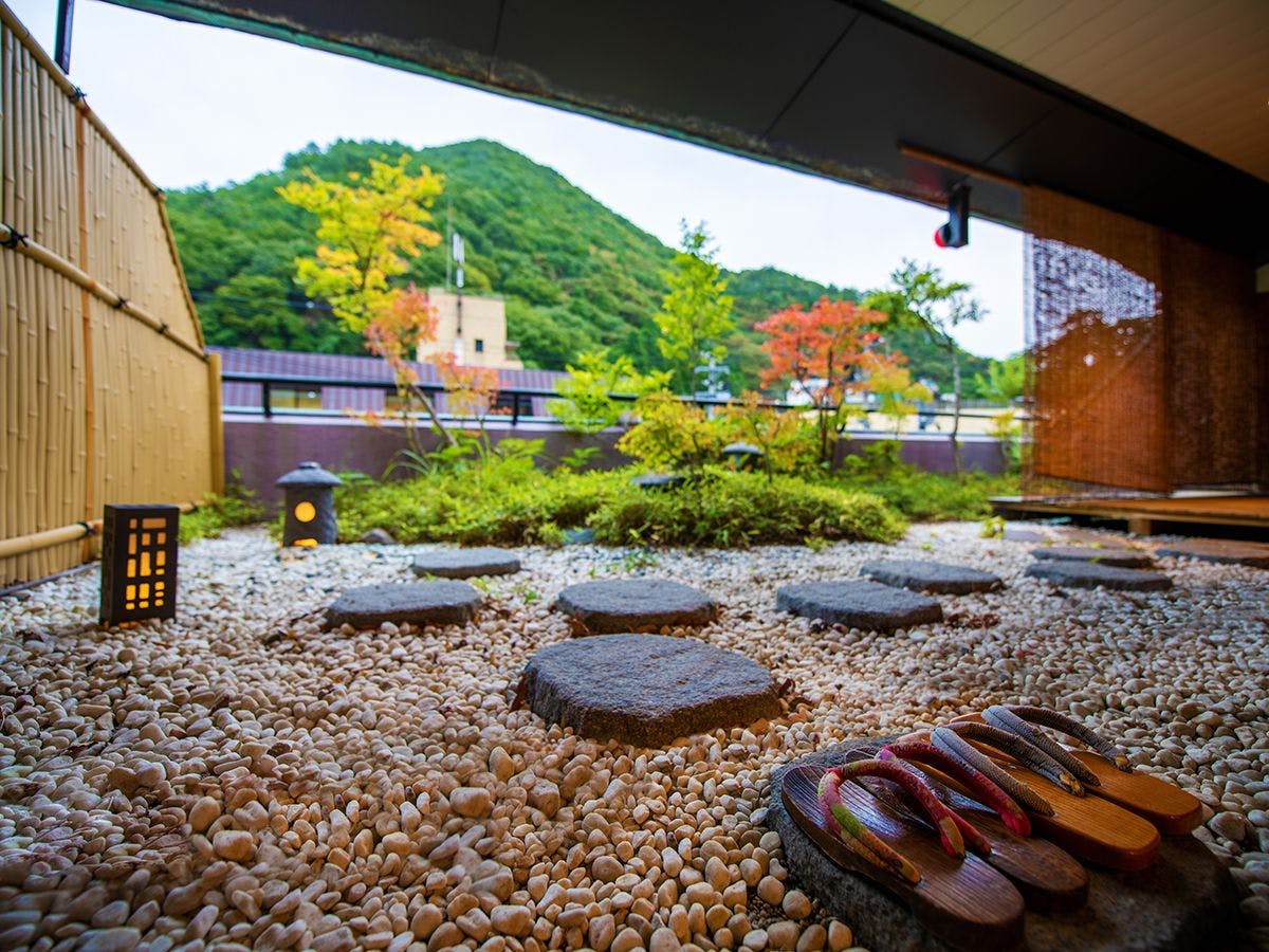 窓の外には美しい坪庭が広がり自然と心が和みます。