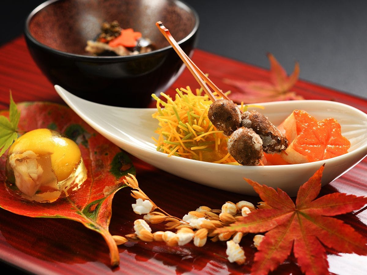 お客様の今を満足あるものに。食事は四季の彩りを盛り込んだ一皿をお部屋で。大人のしっとりとした時間をお約束。今昔亭が守り続けるこだわりです。