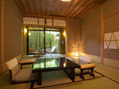 日本古来の匠の技を集めた客室は趣の異なる露天風呂を備えた全10室。