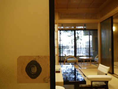 月・・・床の間も、あかりも、壁も月をモチーフとしているお部屋。鳥ノ子張りの襖に秘密が。。。