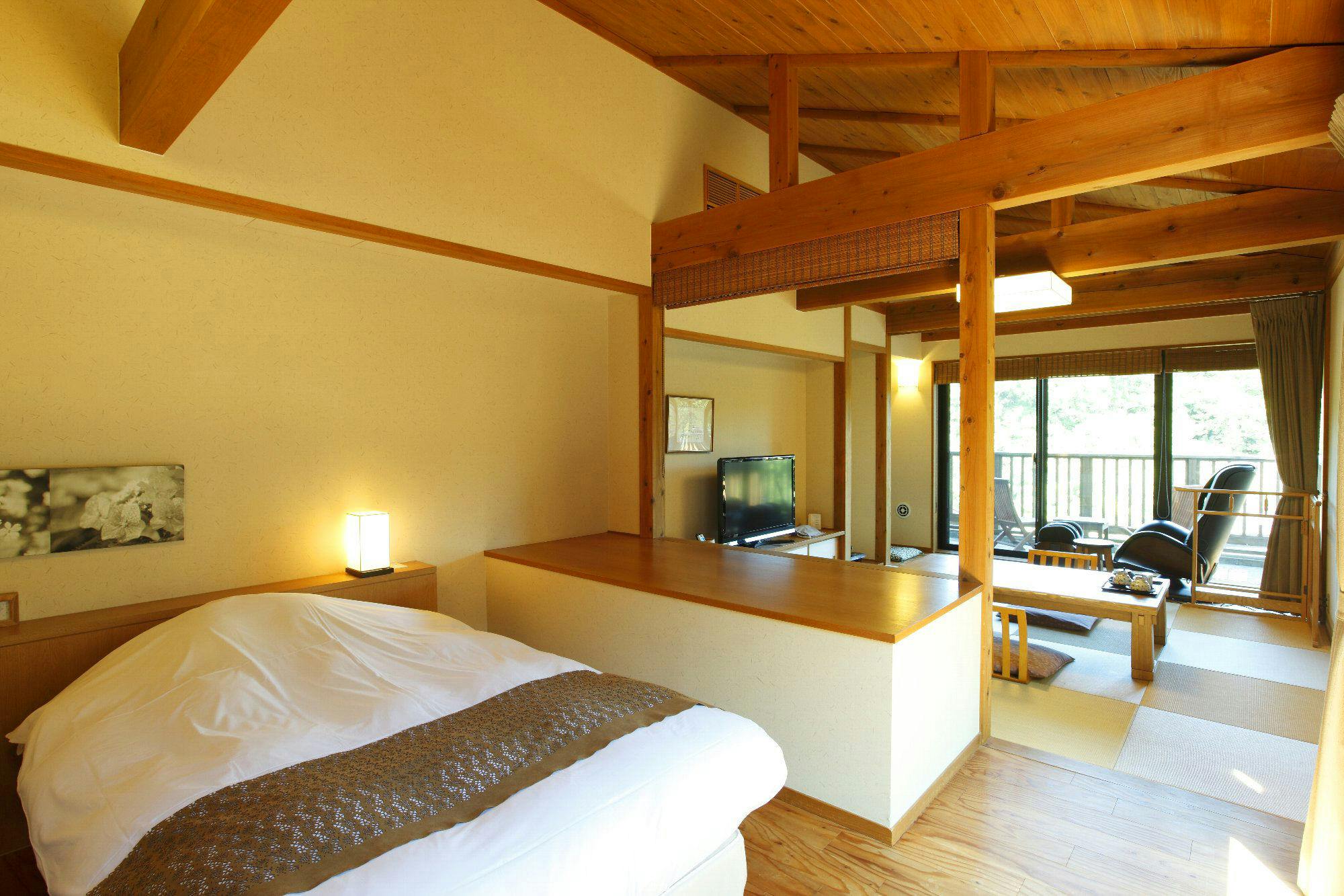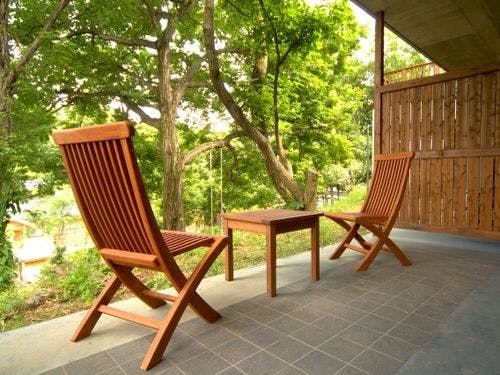 お部屋のテラスでは里山の四季を肌で感じ、