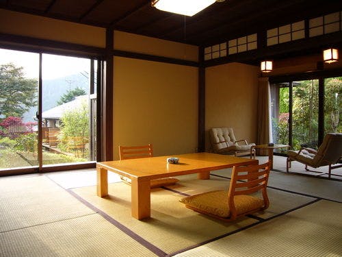 美しい回遊式庭園と錦鯉が泳ぐ池を望む南向きの明るい和室です。禁煙ですが、窓の外は喫煙可となっております。トイレ付客室ですが、お風呂は大浴場をご利用ください。