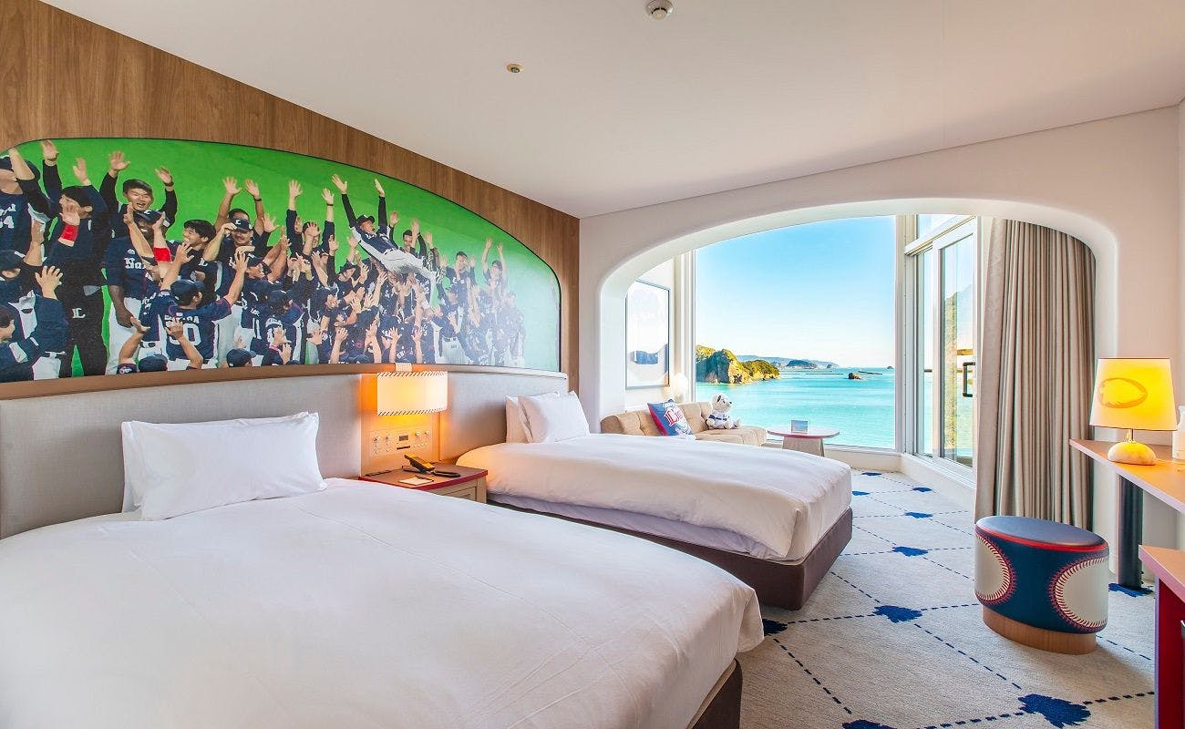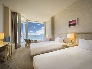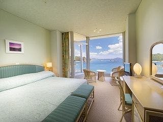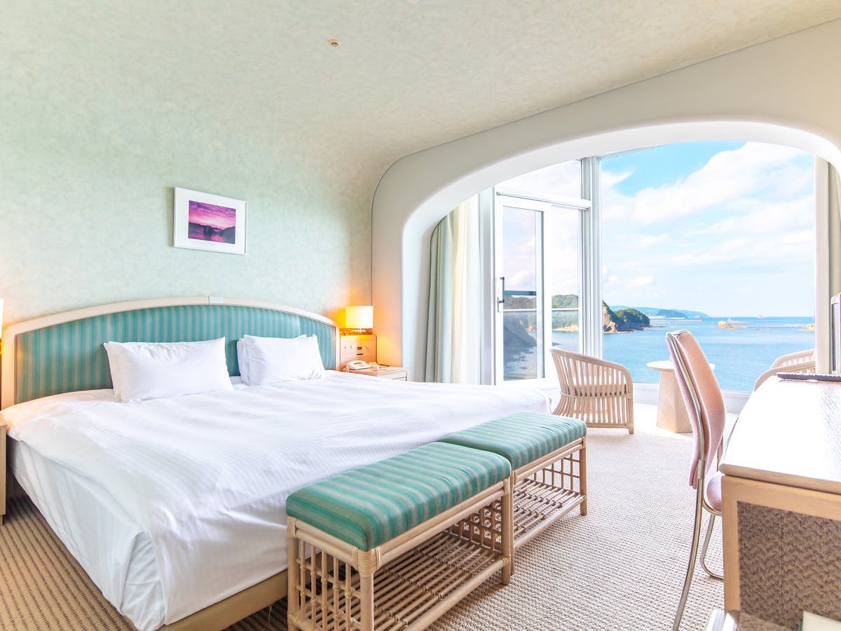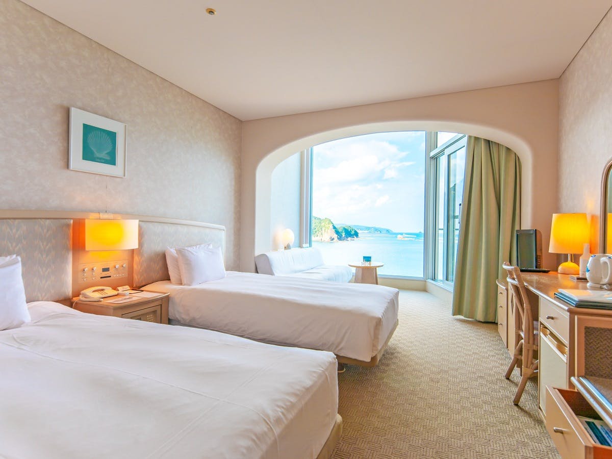 全ての客室が海側に面しており、大きくとられた窓からは、日向灘の美しい島々と静かにたたずむ入江を望むことができます。