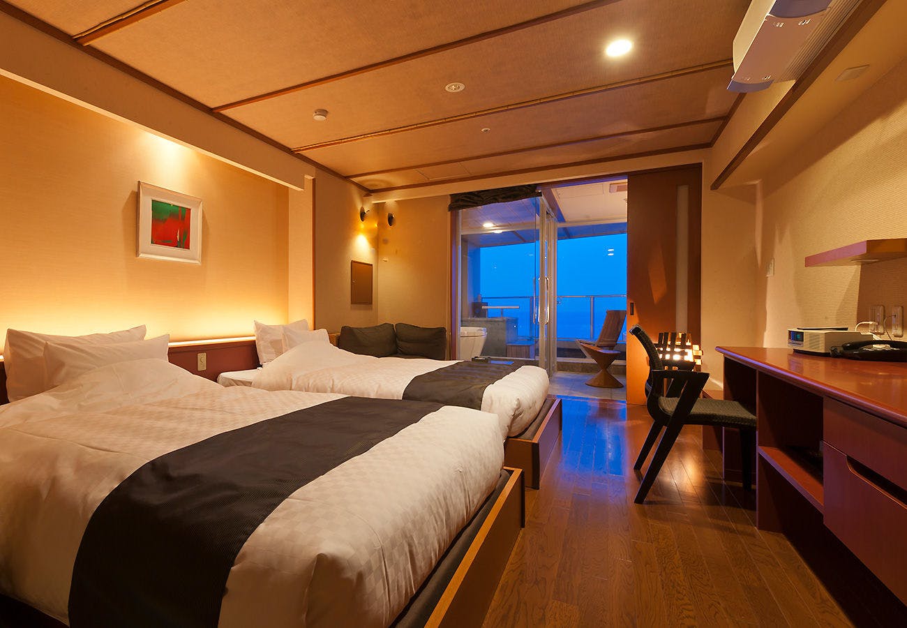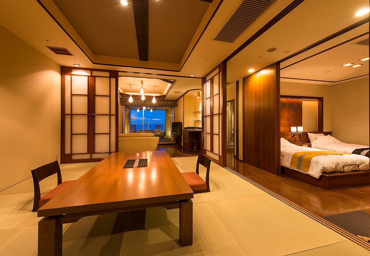 10帖和室+ベッドルーム(ツイン)+リビング+シャワールーム+天然温泉露天風呂+展望テラス