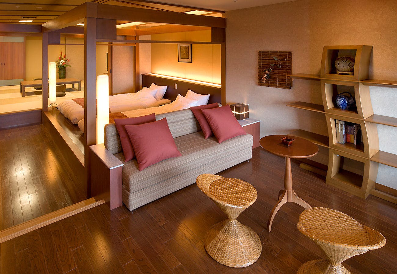 広々和室にベッドルーム、さらには専用の露天風呂や内風呂がついた豪華な客室です 。