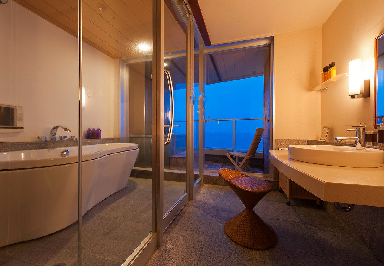 露天風呂はもちろん、シャワールームやパウダースペースからも海を一望。