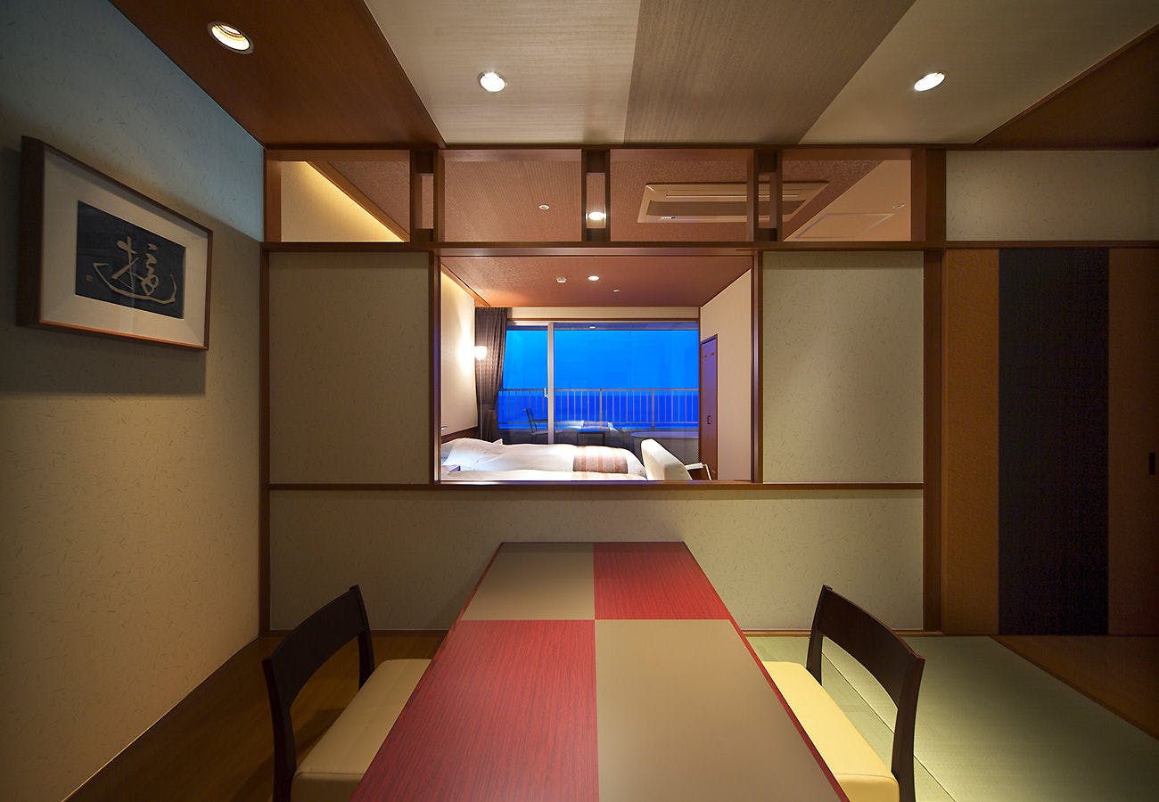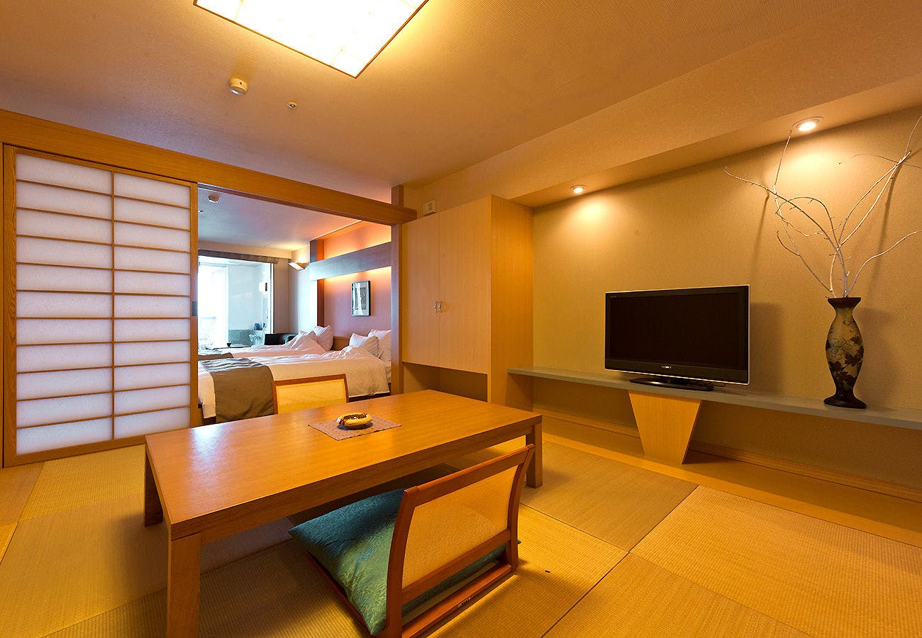 和室+ベッドルームのゆとりの客室は二人のプライベート空間。