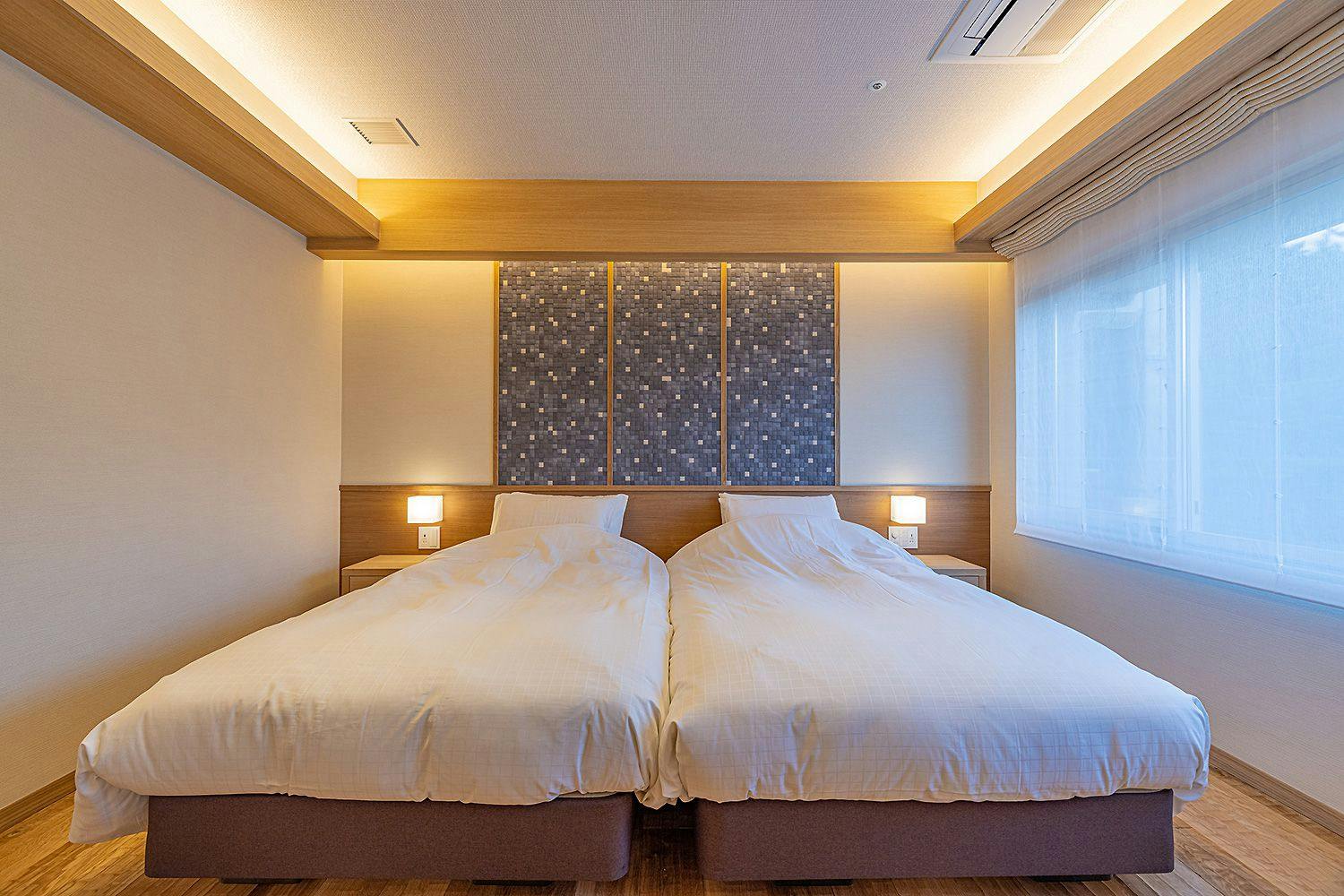 7.5帖和室+ベットルーム(ツイン)+半露天風呂(シルキーバス)