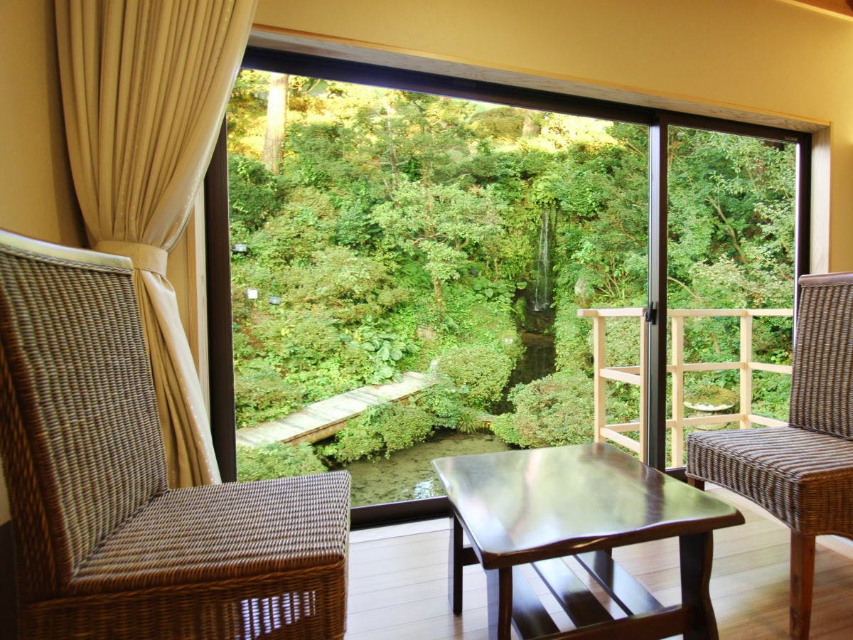 自慢の4000坪の大庭園と県下最大級の庭園大露天風呂と趣の異なる茶室風貸切露天風呂3棟で温泉三昧を楽しみ下さい。平成28年5月五頭温泉郷が環境省より「国民保養温泉地」に指定。全室wi-fi利用可