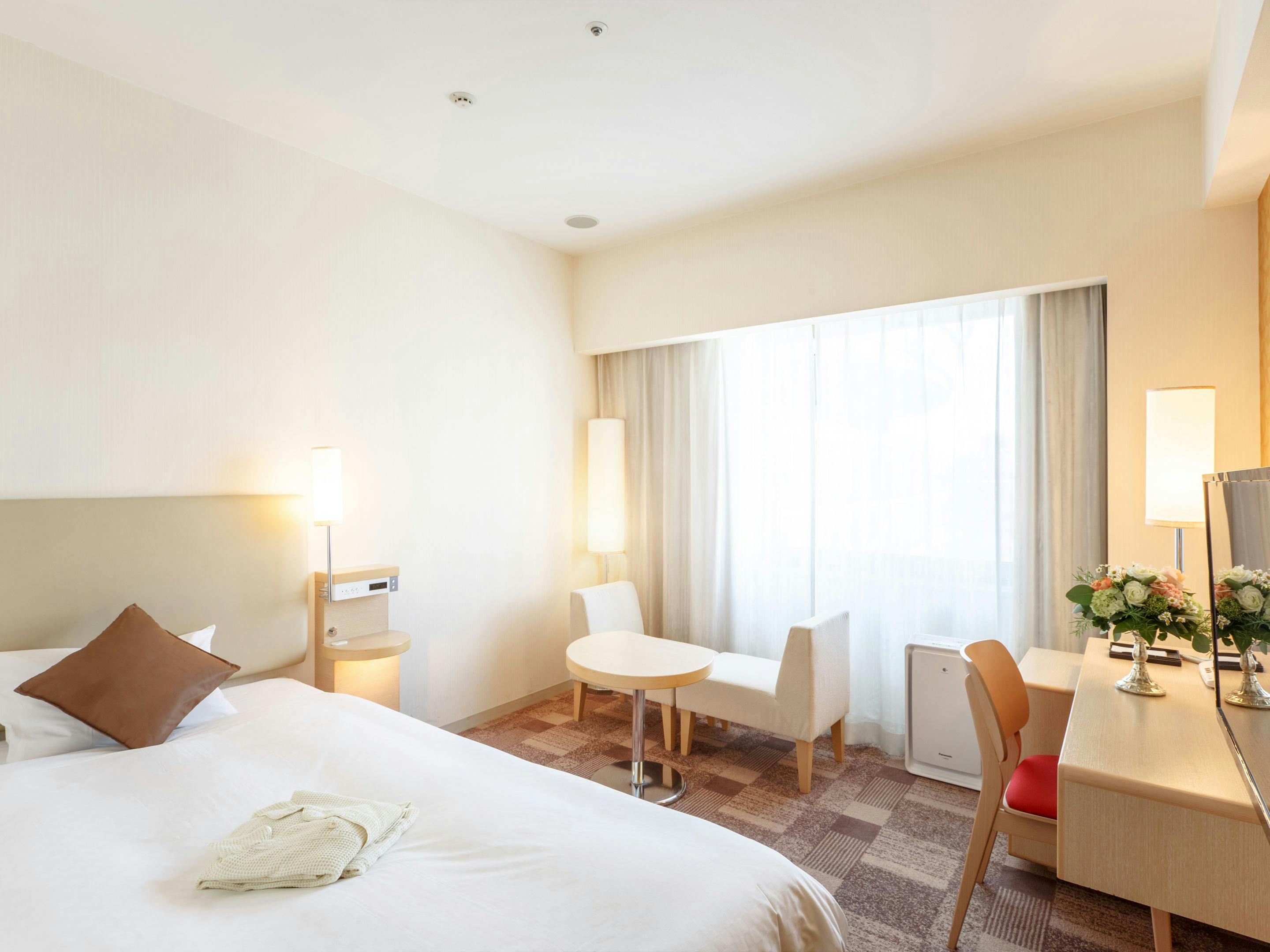 客室最上階で1ランク上の寛ぎを・・・木の素材感を活かした風合いと、ベージュ系の落ち着いた色合いが格調高い雰囲気を演出。ゆったりとしたリビング、セパレートのバス・トイレ、ドレッサールームまでご用意。※高速道路に面しております。予めご了承下さい。※禁煙ルームのみ(喫煙ルームはございません)※エキストラベッドの追加は出来かねます