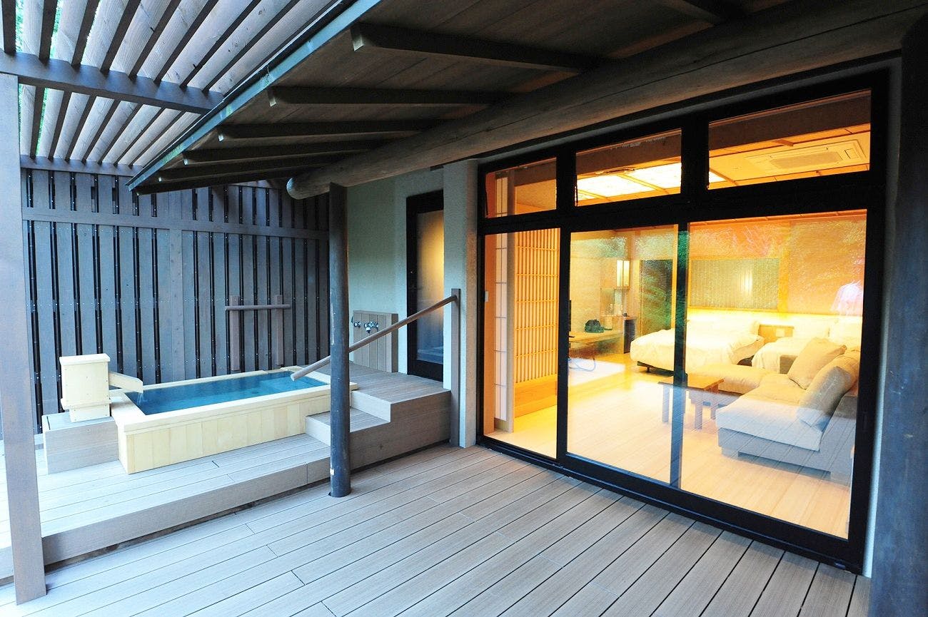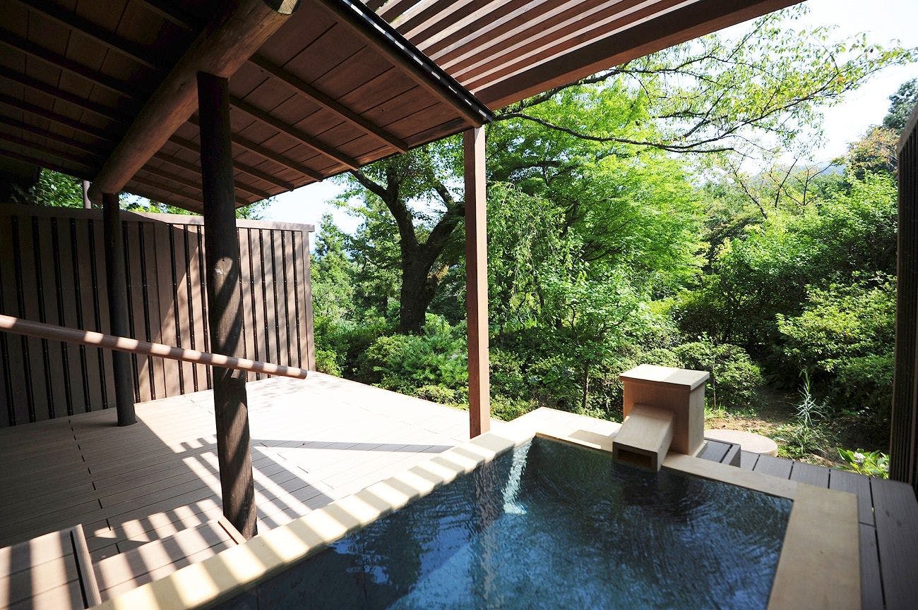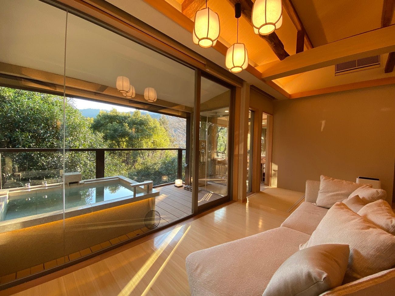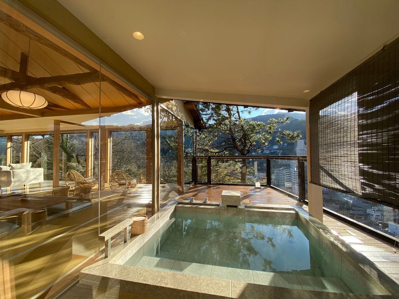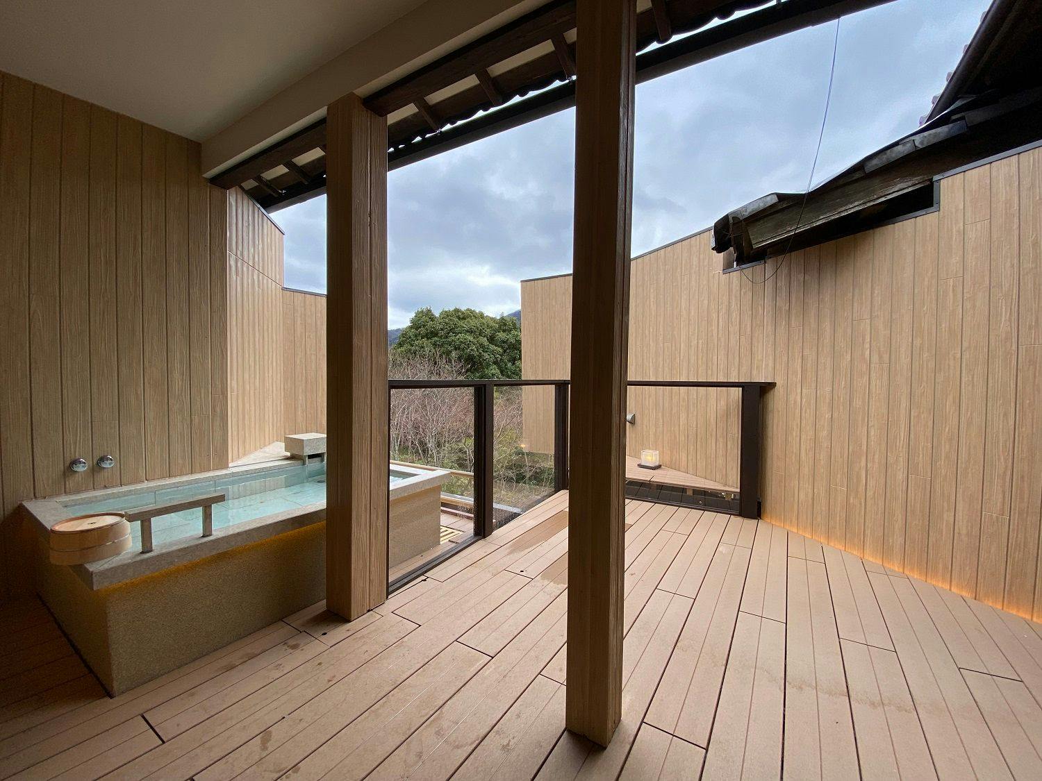 2021年秋に新設の源泉掛流し露天風呂付客室。
