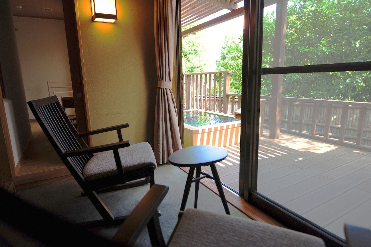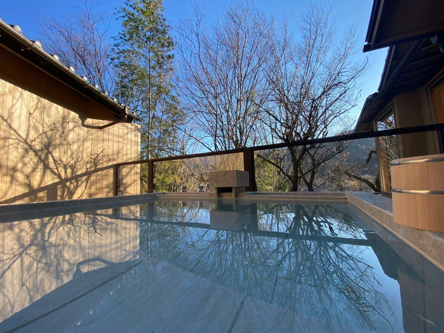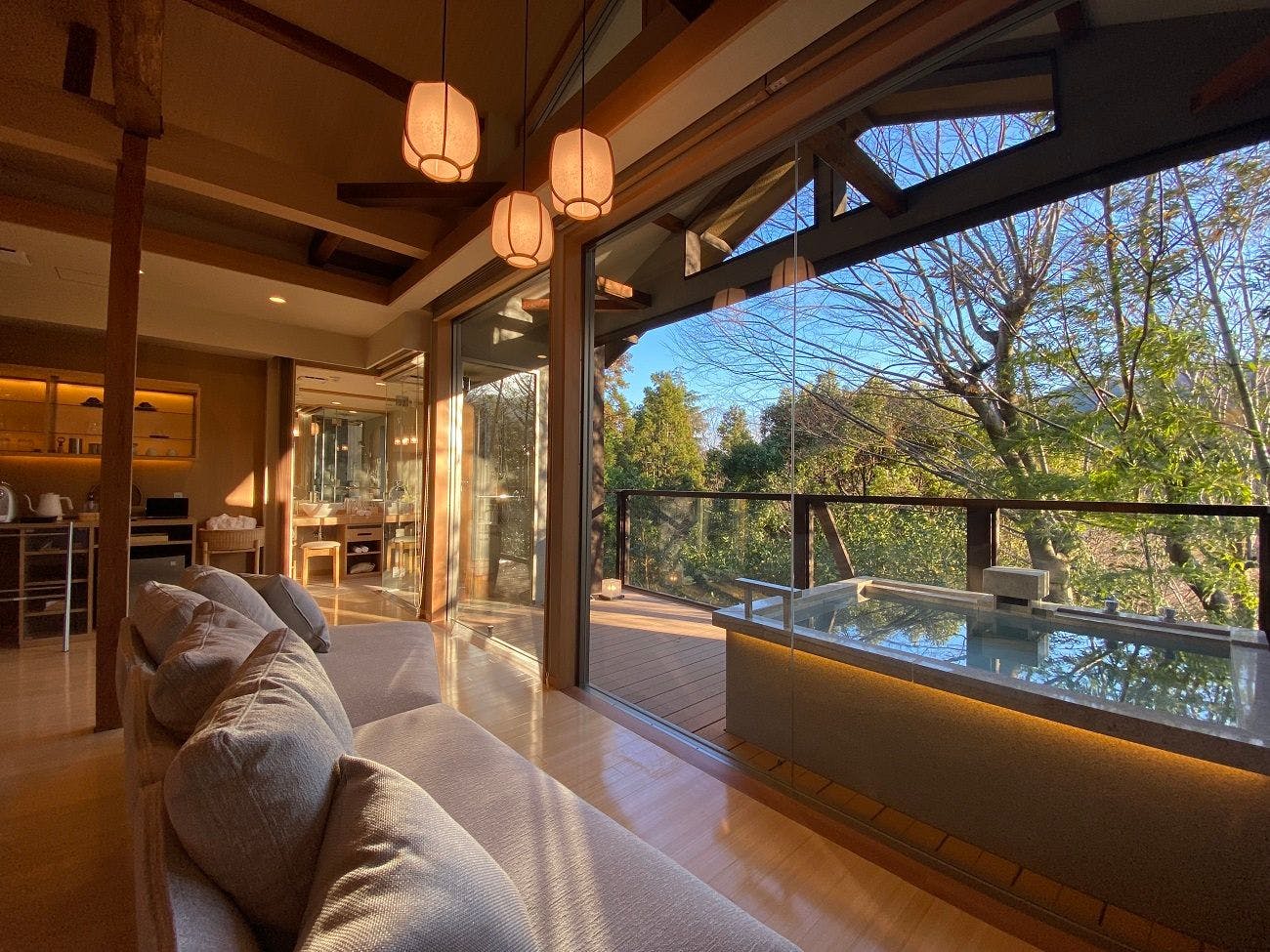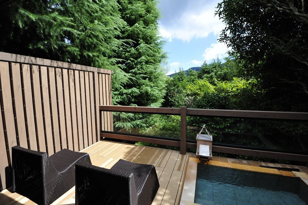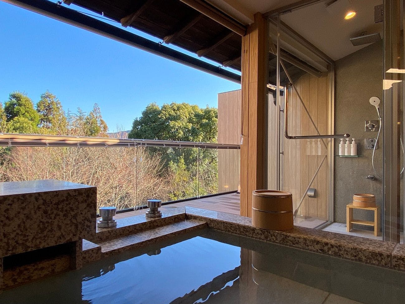 2021年秋に新設の源泉掛流し露天風呂付客室。