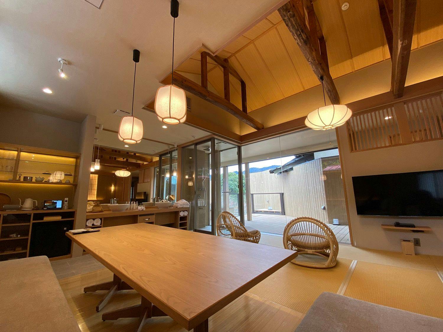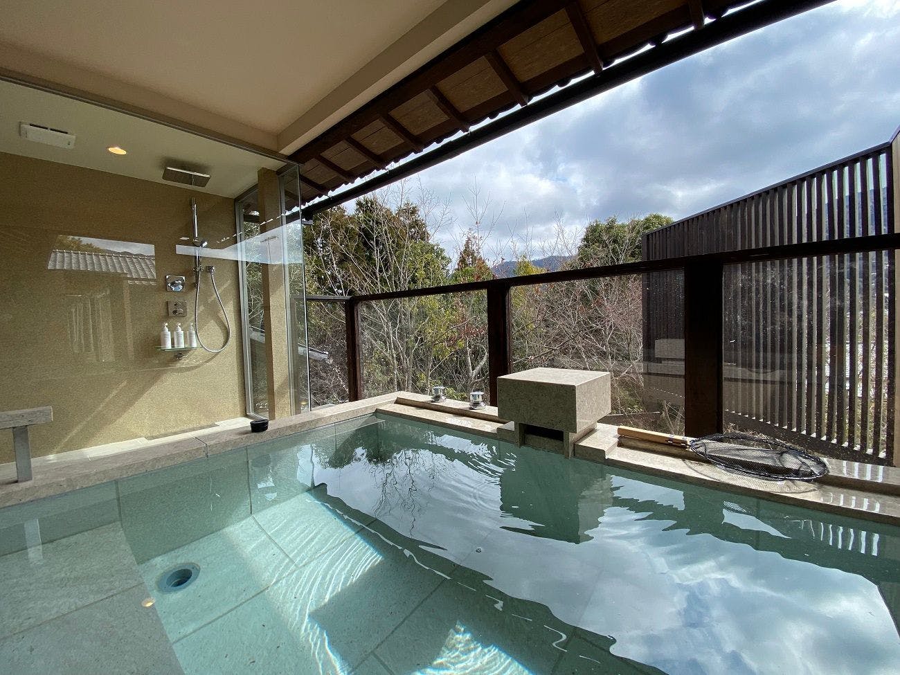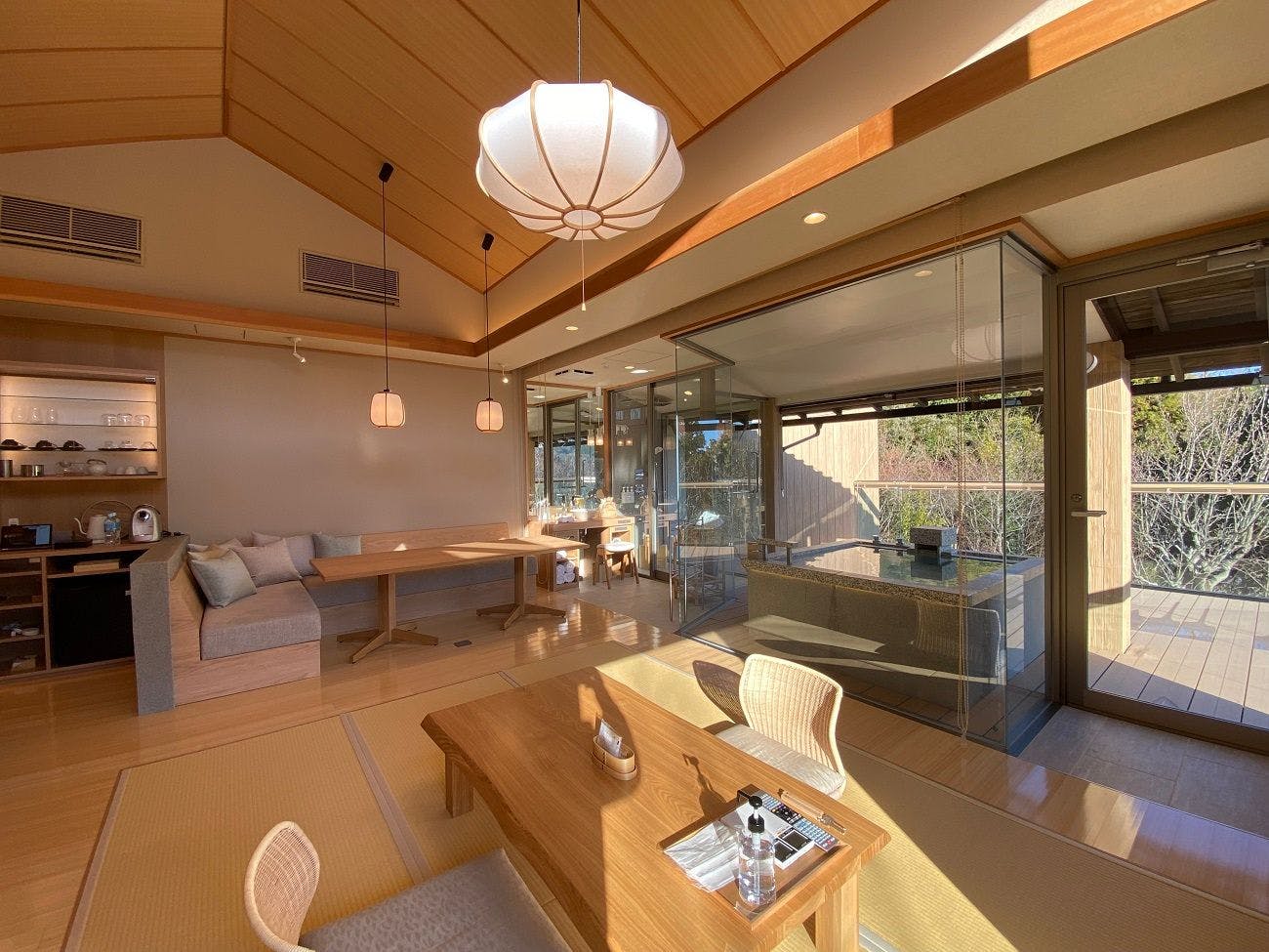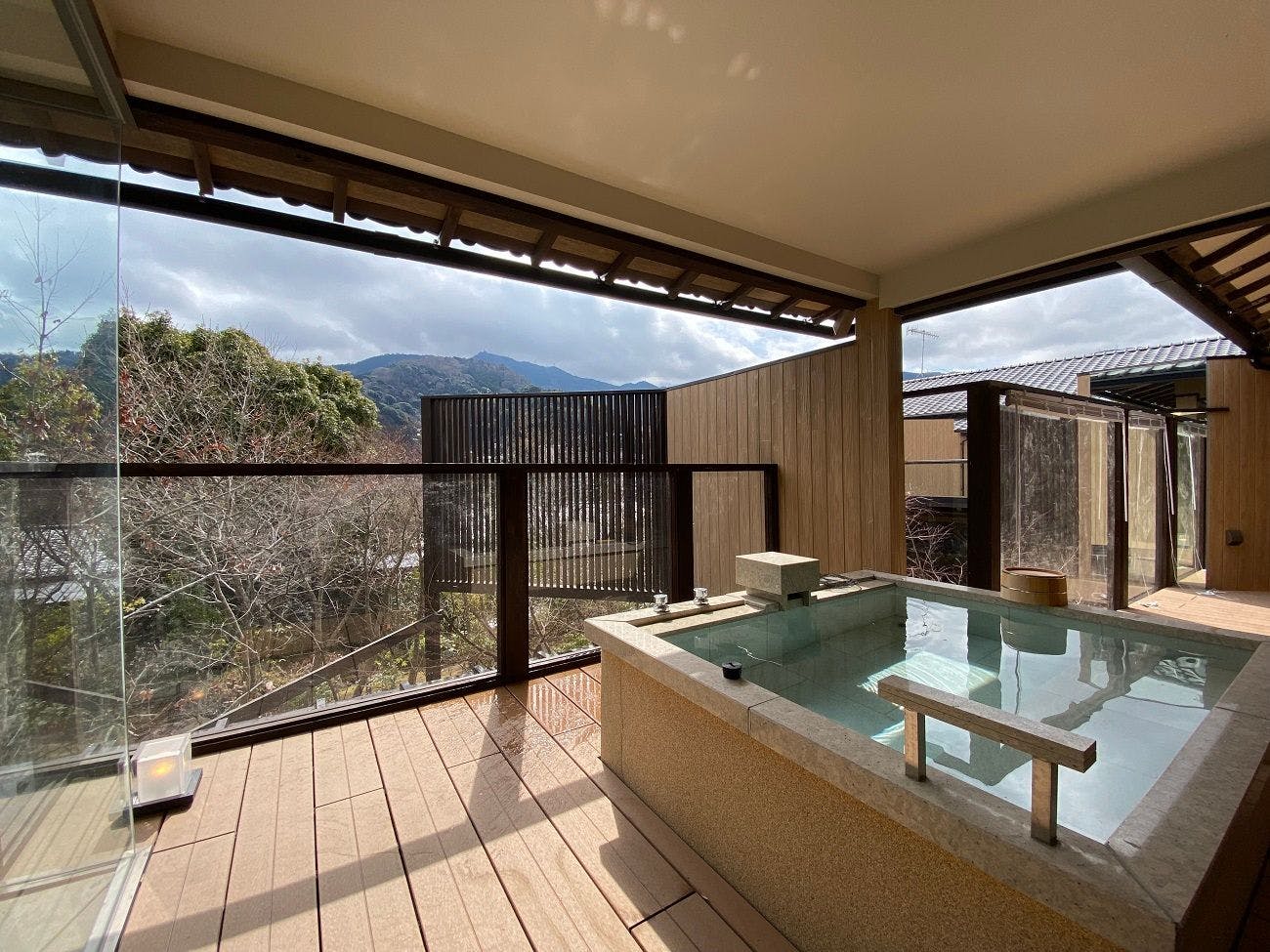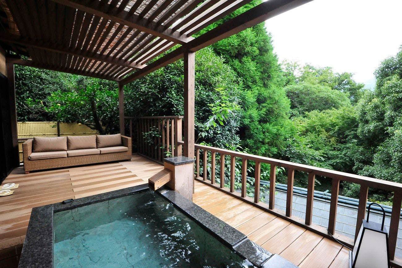 2021年秋に新設の源泉掛流し露天風呂付客室。