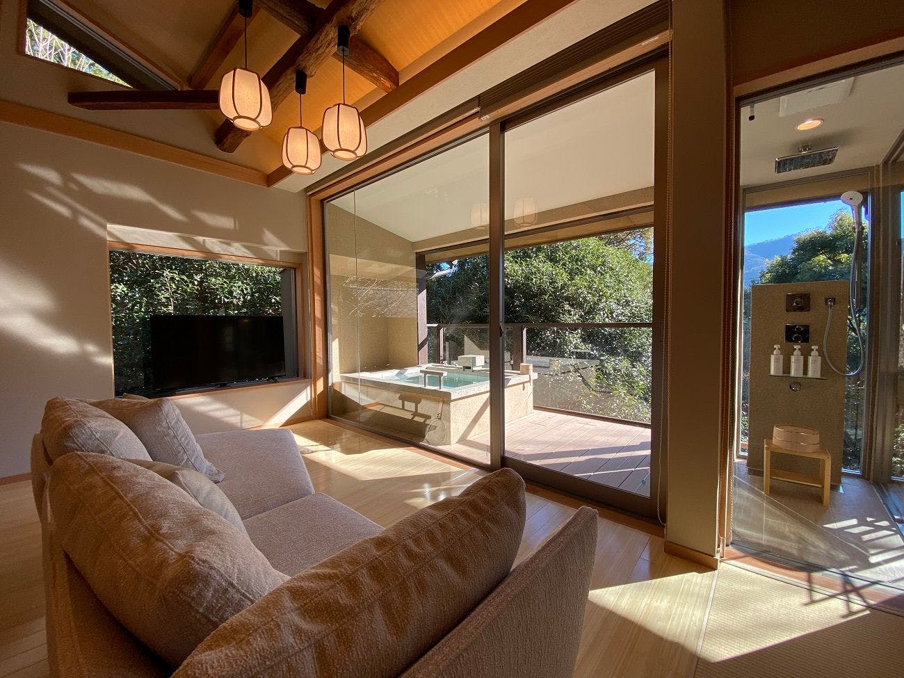 静寂な時間を、ゆったりと贅沢に、大自然に囲まれた湯河原の柔ら湯と共にお過ごしください。