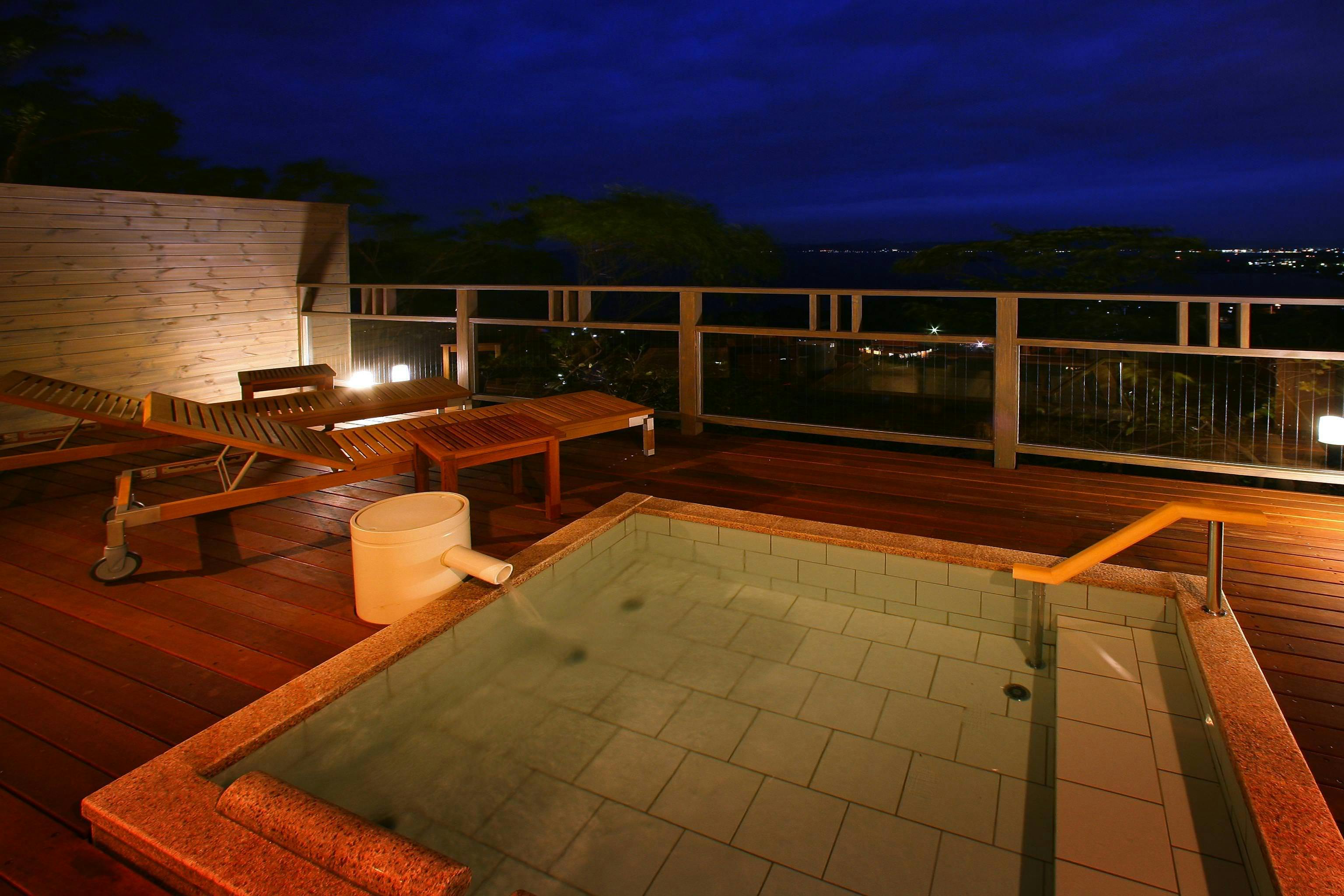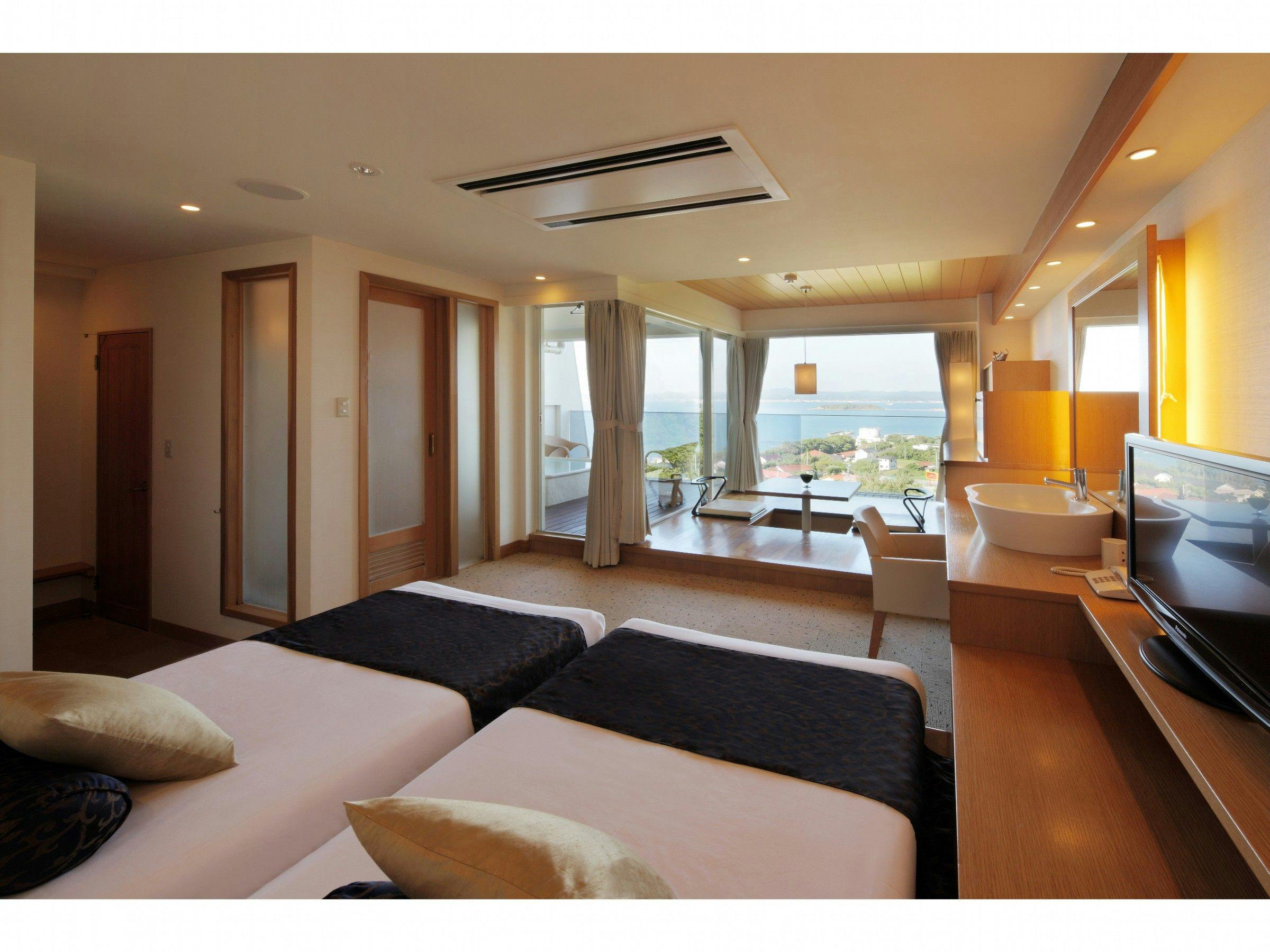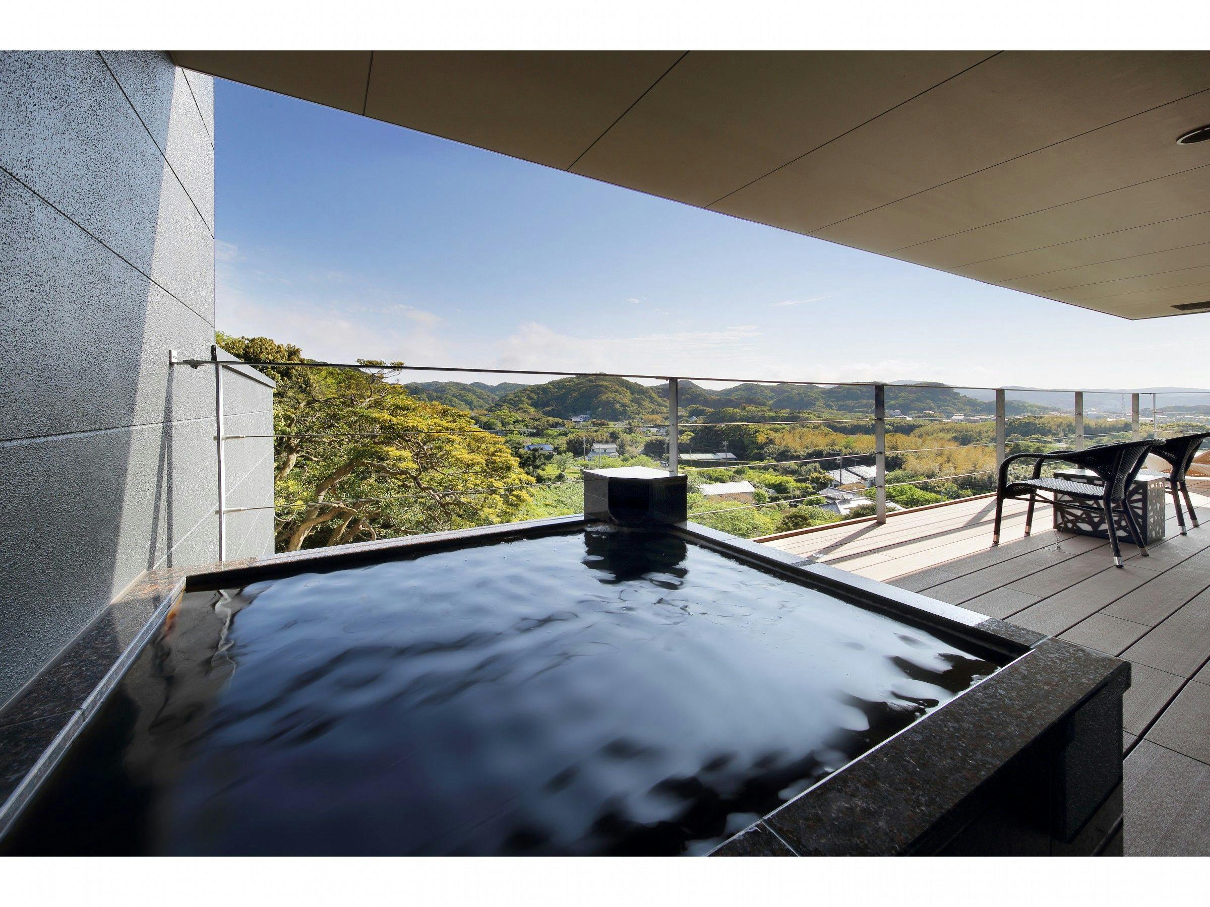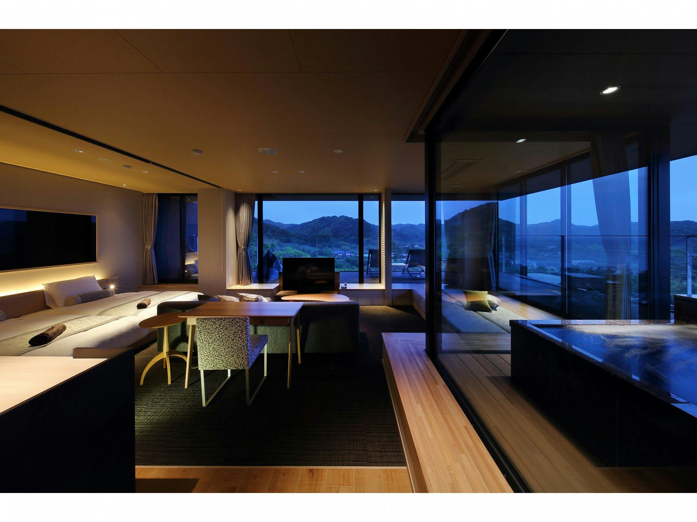 最大定員 4名様211平米【テラス含む】リビング、ウォークインクローゼット、専用ダイニング、ベッドルーム(2室)、温泉露天風呂、シャワーブース、トイレ、海眺めのテラスシモンズ社製ベッド