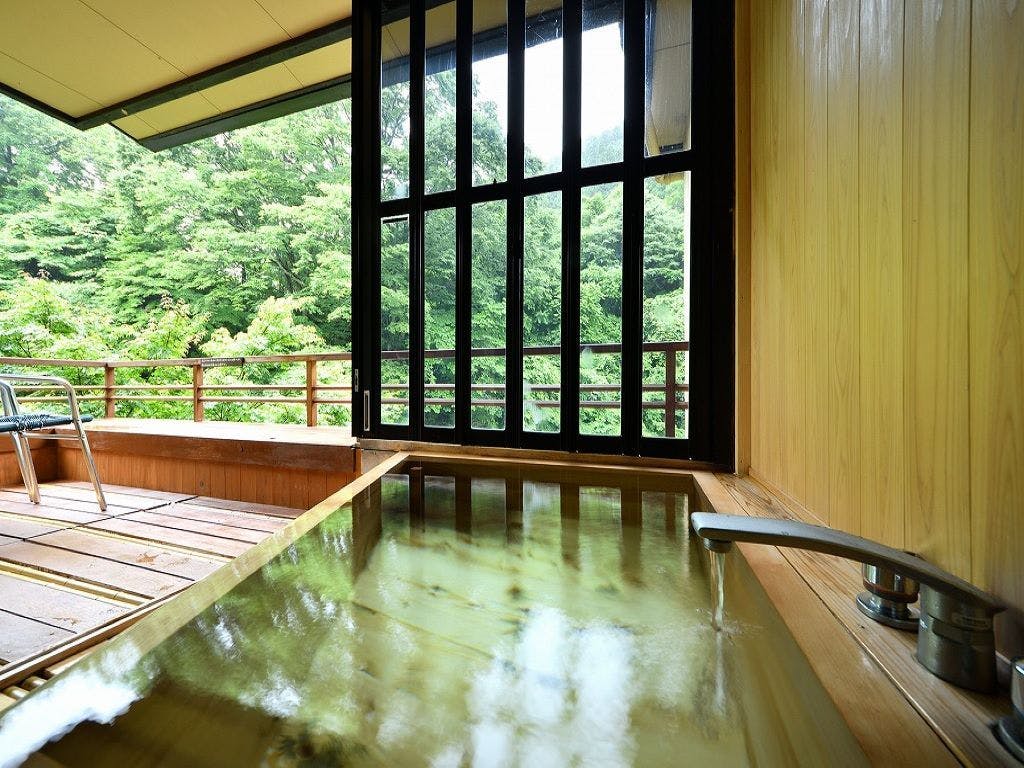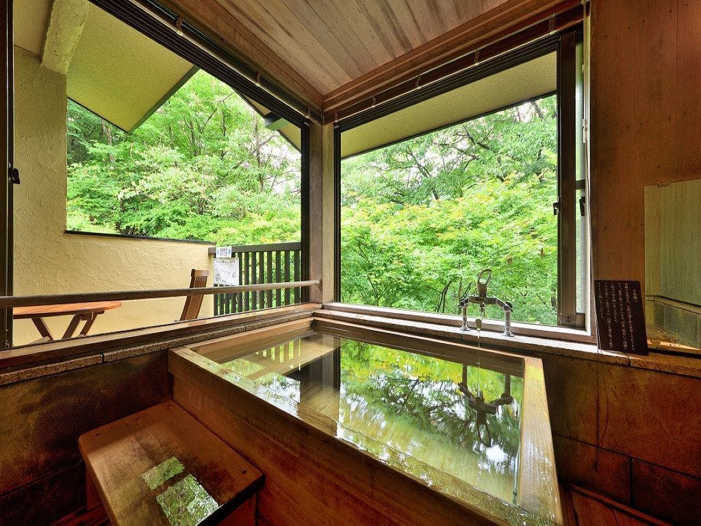目の前に滝と渓流が見える、絶好のロケーションのお部屋です。また、せせらぎの湯と直結ですので、ご家族皆様でのご入浴や付き添いが必要な方もご利用しやすい造りになっております。滝見乃湯・薬師の湯やお食事処とも同階にありご移動が大変スムーズです。※お部屋のお風呂は温泉ではありません。※全ての客室を禁煙とさせていただいております。(電子たばこも含む)お煙草を吸われるお客様は、館内指定の場所にて喫煙をしていただきますよう、ご理解ご協力の程お願い申し上げます。