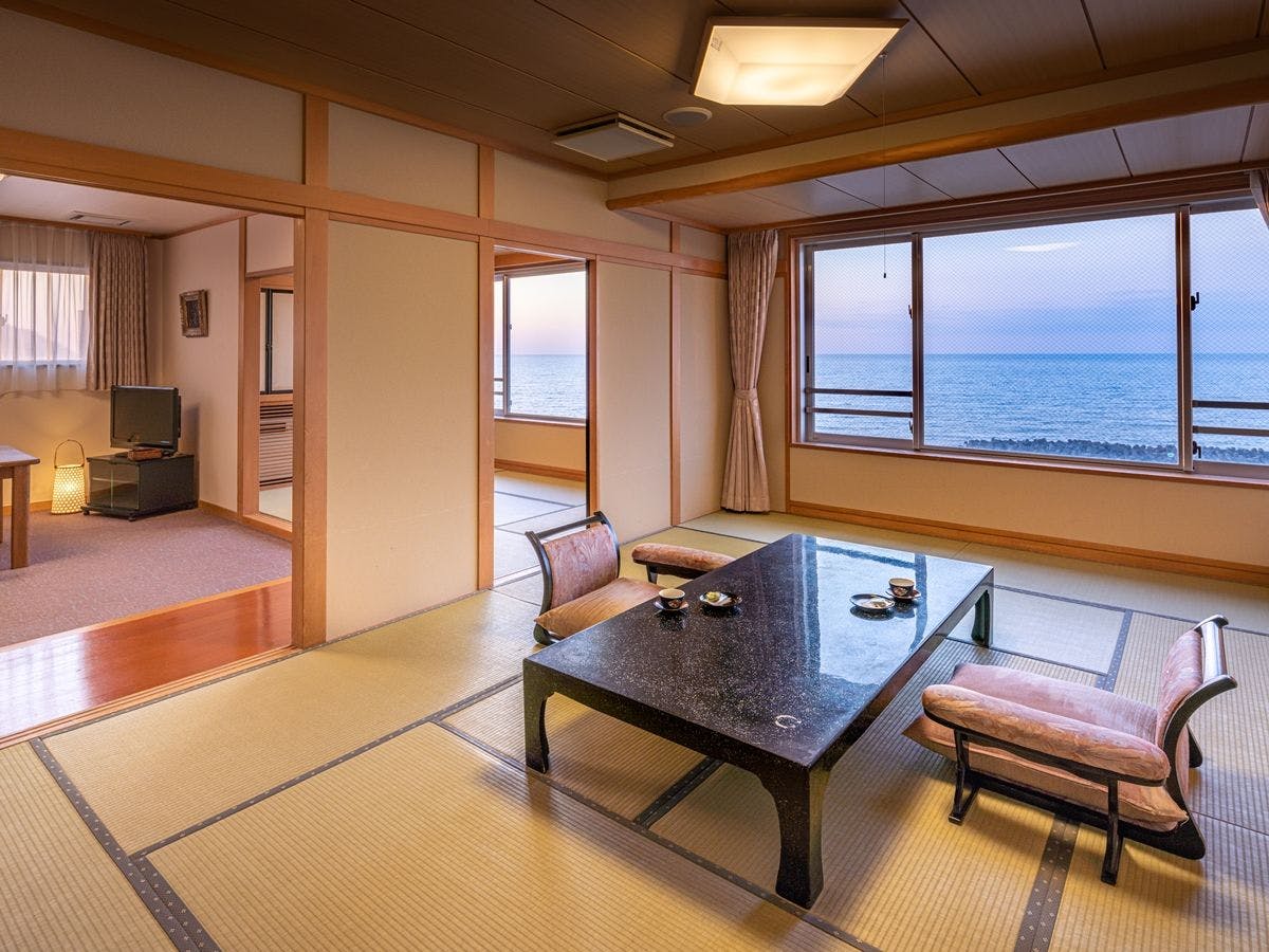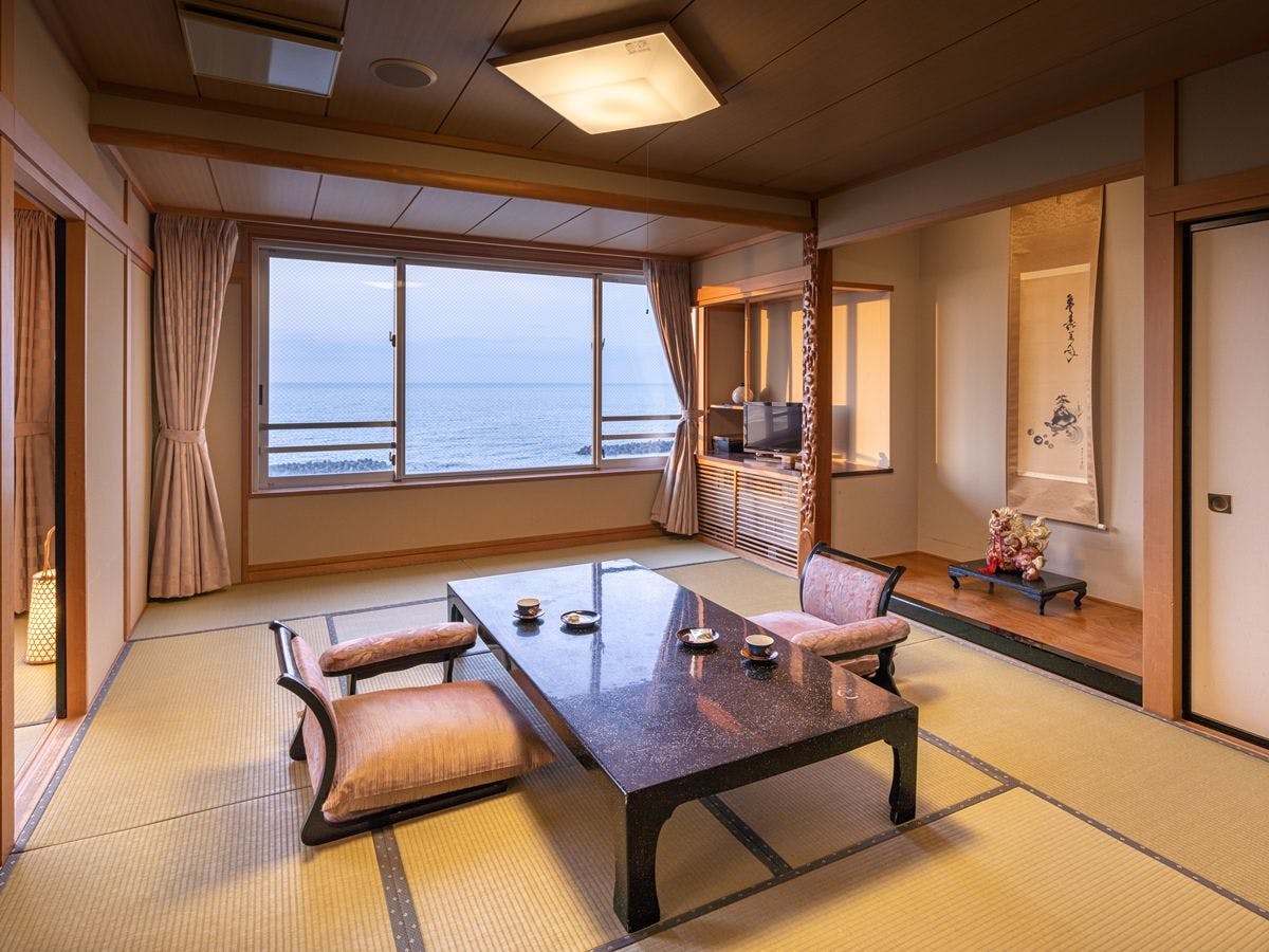 二間つづきの和室のお部屋、そのどちらからでも海をご覧いただけます。