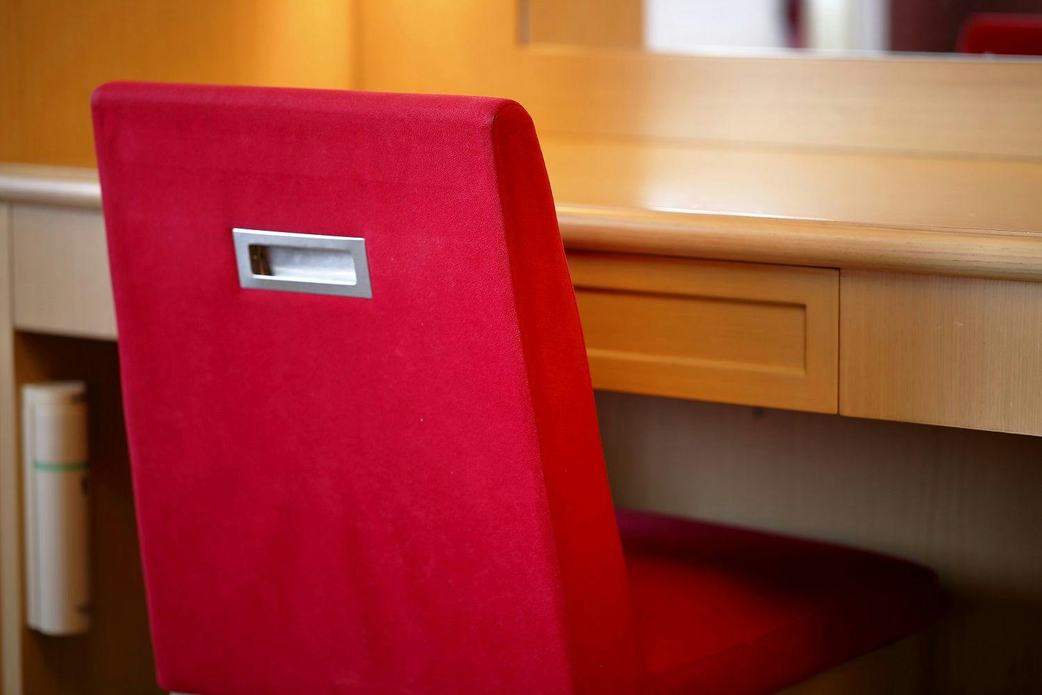 京の夕暮れを思わせる茜色をベースに、鮮やかなピンクのアクセントがチャーミングなお部屋です。木目を生かしたベージュの柔らかな色合いの家具が、穏やかな眠りを誘ってくれます。