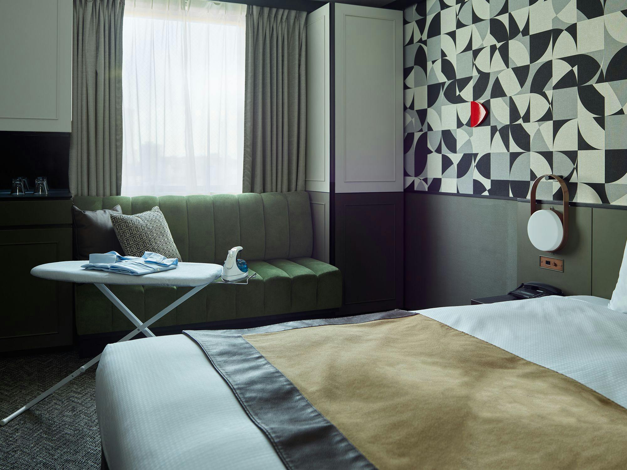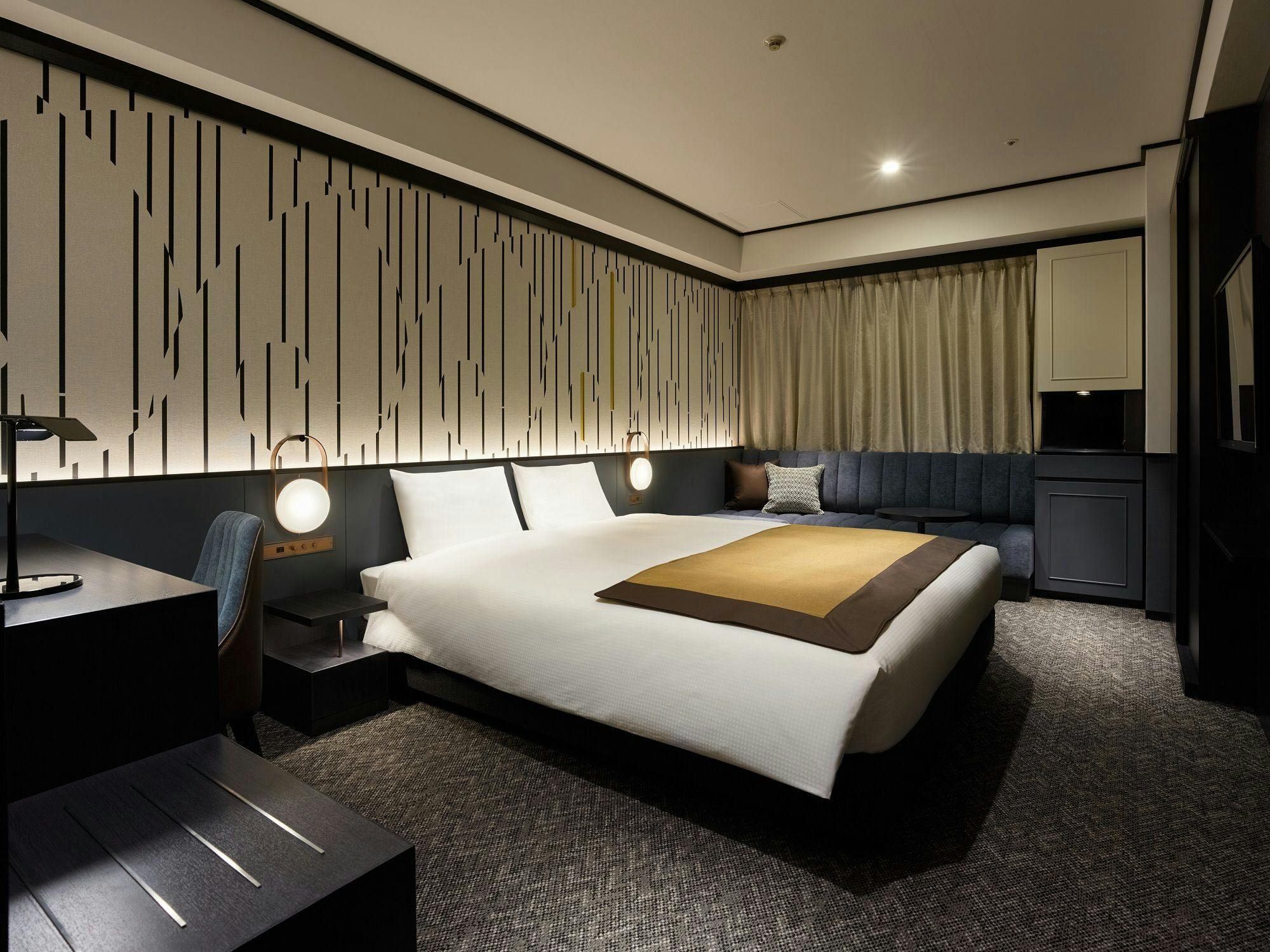 ゆったりとした幅164cmのクイーンサイズベッドのお部屋です。窓際にはお寛ぎいただけるソファスペースを確保しております。客室でゆっくり過ごしたいビジネスマン、カップルに人気のダブルルームです。