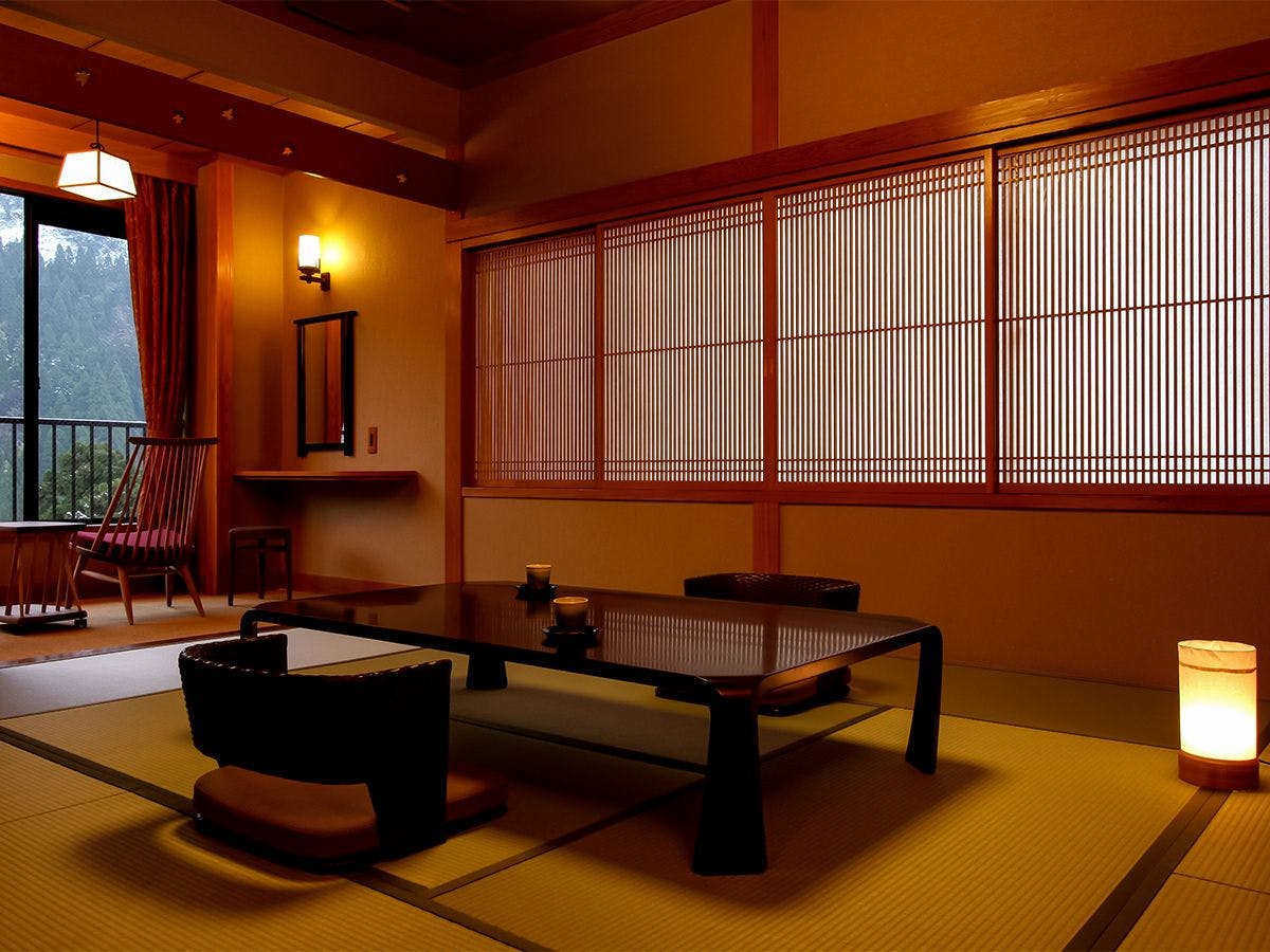 喧騒から心身を解き放ち、気兼ねもない心静かな時を過ごせる我が家の様な心地良い空間で、古き良き昔ながらの情緒あふれる純和風客室です。