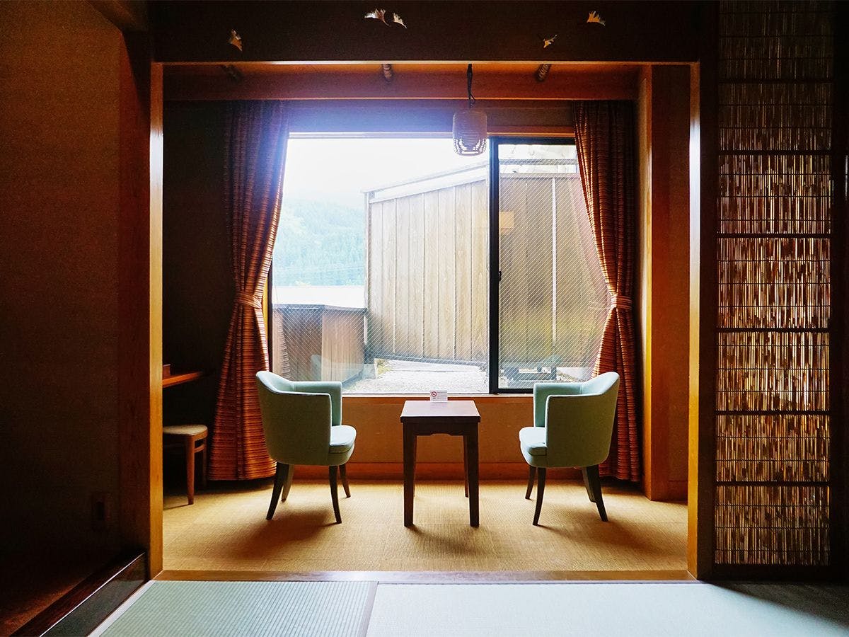 照明や色彩へのこだわり、そして自然との調和。古き良き日本の伝統美を活かし、和のやすらぎの中にモダンなテイストを加えたデザインの客室です。