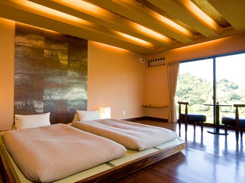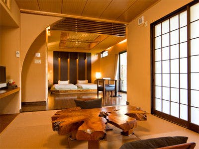 趣向の異なる離れの客室は、それぞれ開放感のある露天風呂付。