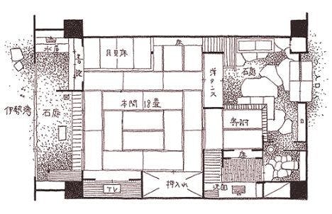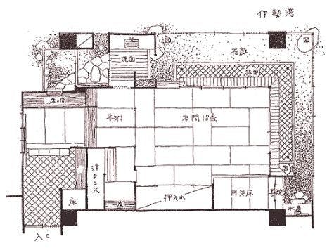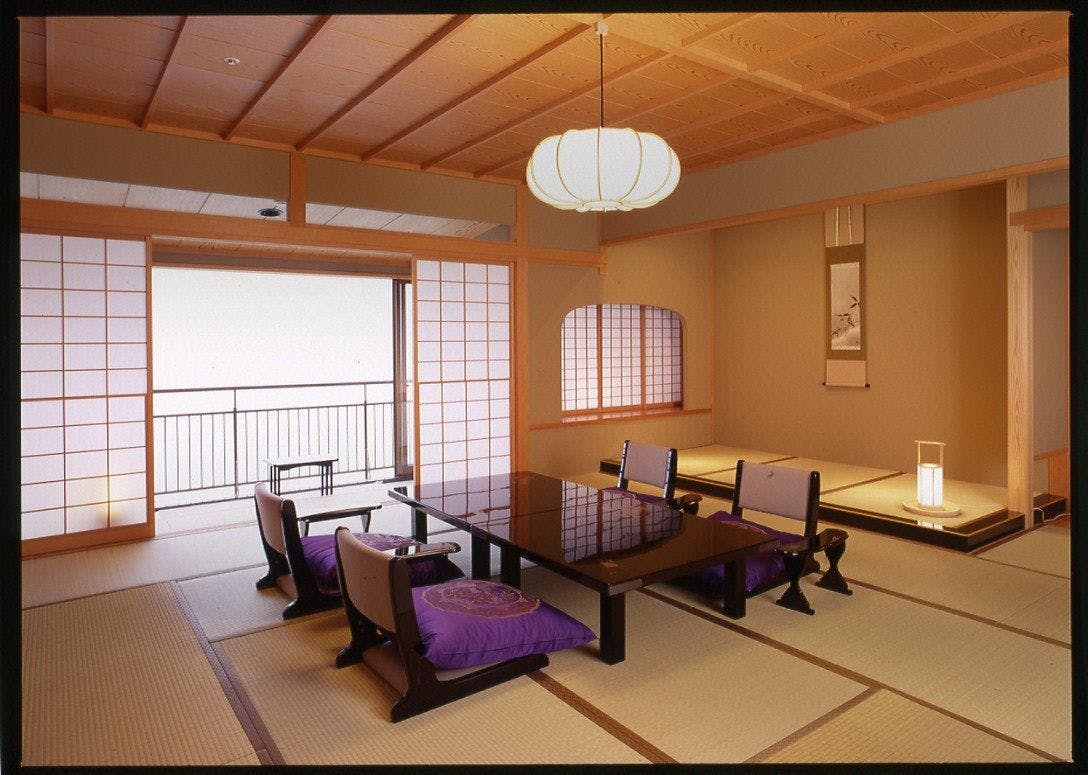露天風呂付の特別室です。当館主こだわりのお部屋で、「光源氏」「本阿弥」「古金襤」の3ルーム限定となっております。もちろんオーシャンビューです。<間取り図>1枚目・・・光源氏2枚目・・・本阿弥3枚目・・・古金檻