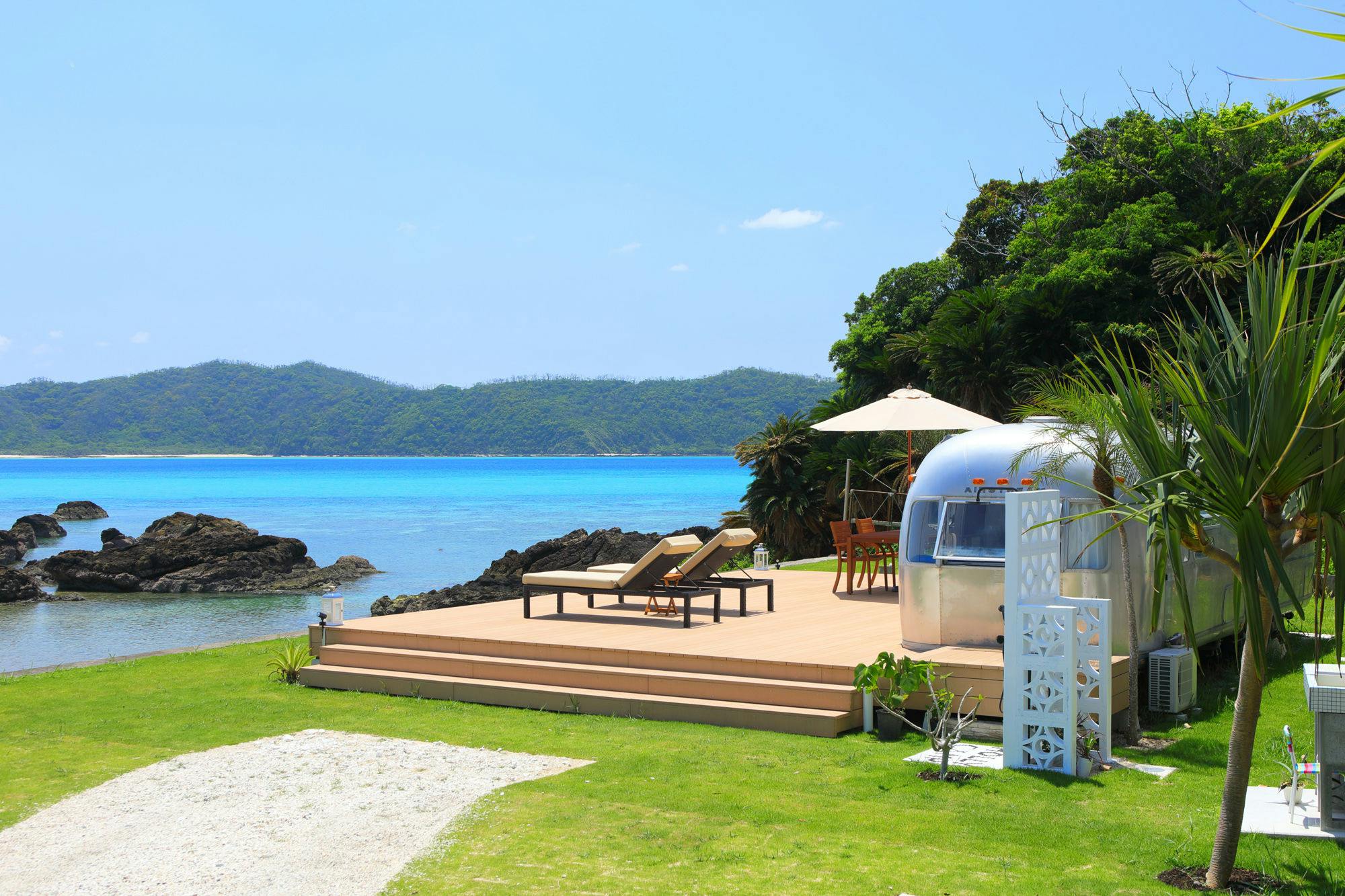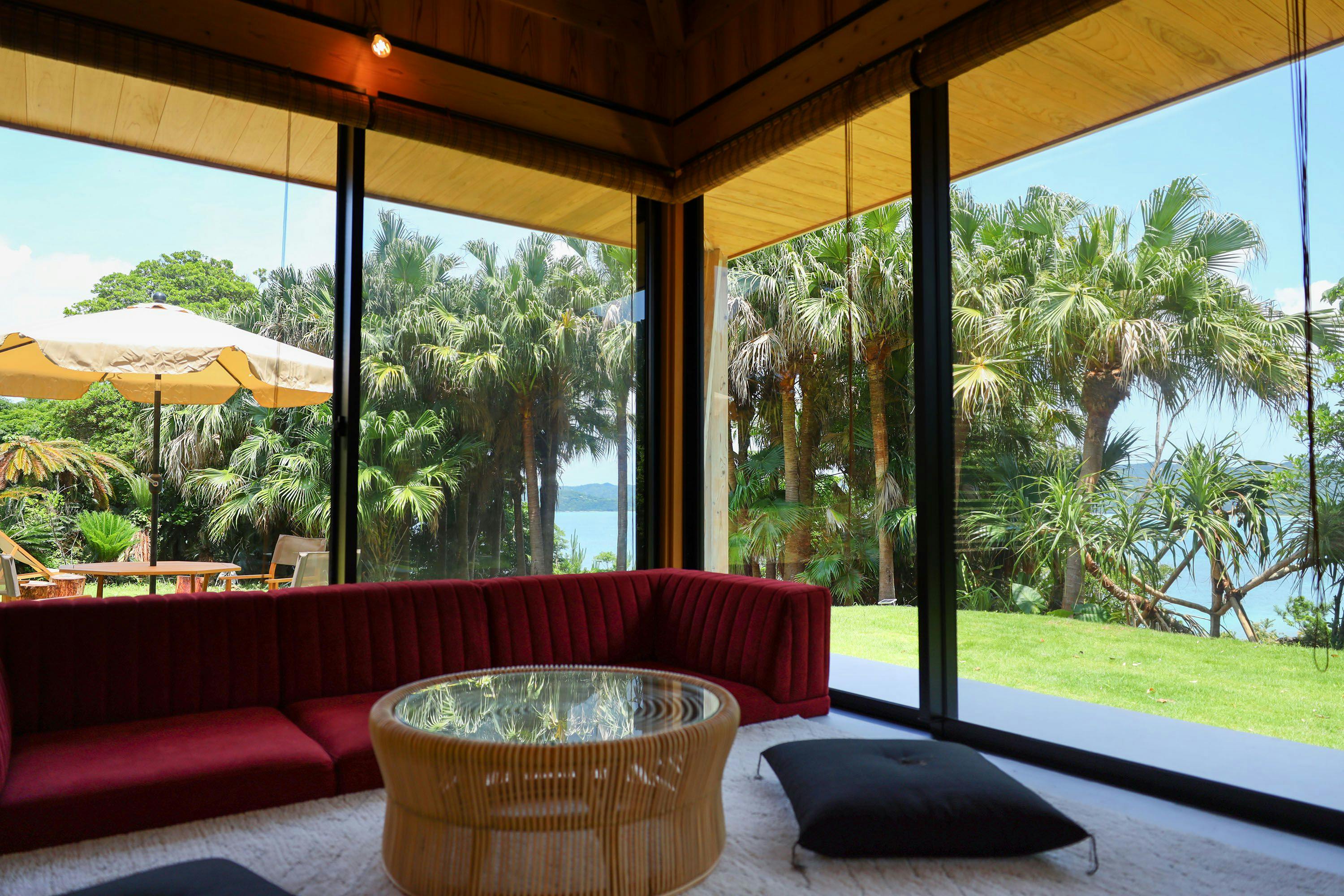 組子格子や大島紬を使ったライトスタンドなど、こだわりのアートをちりばめた海が見えるお部屋。客室にはバルミューダのケトルや、冷凍冷蔵庫等を完備しており、長期滞在にもお勧めです。※3名様利用の場合、エキストラベッドを追加します。
