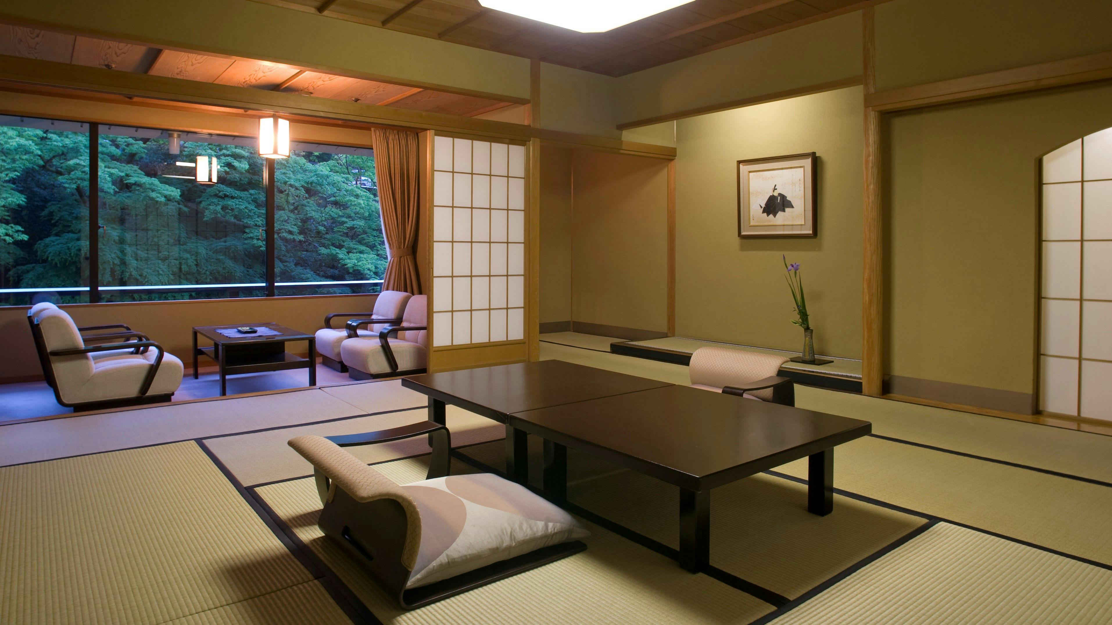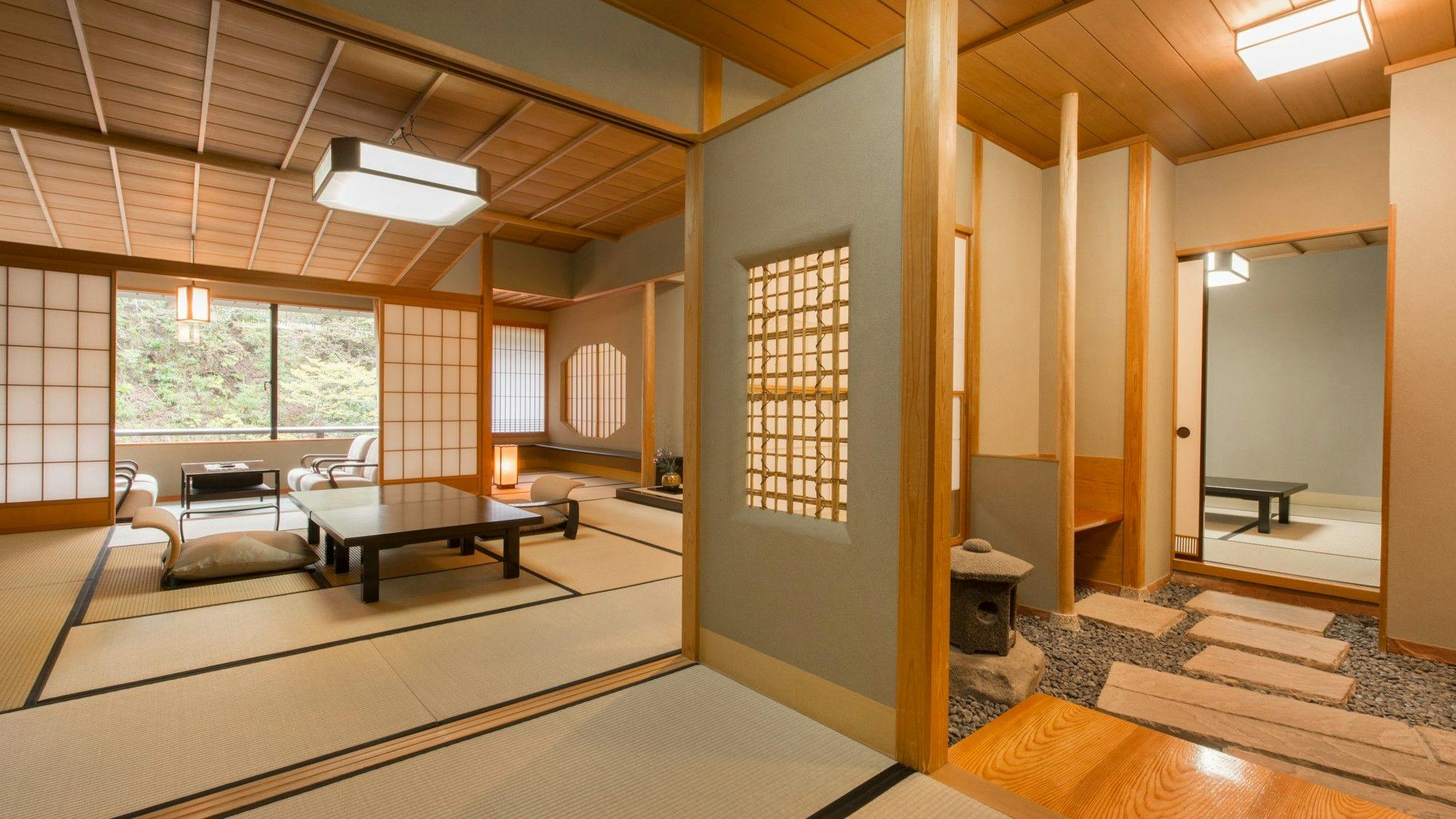 □眼下に鶴仙渓を望む風光明媚な半露天風呂付(26平米)